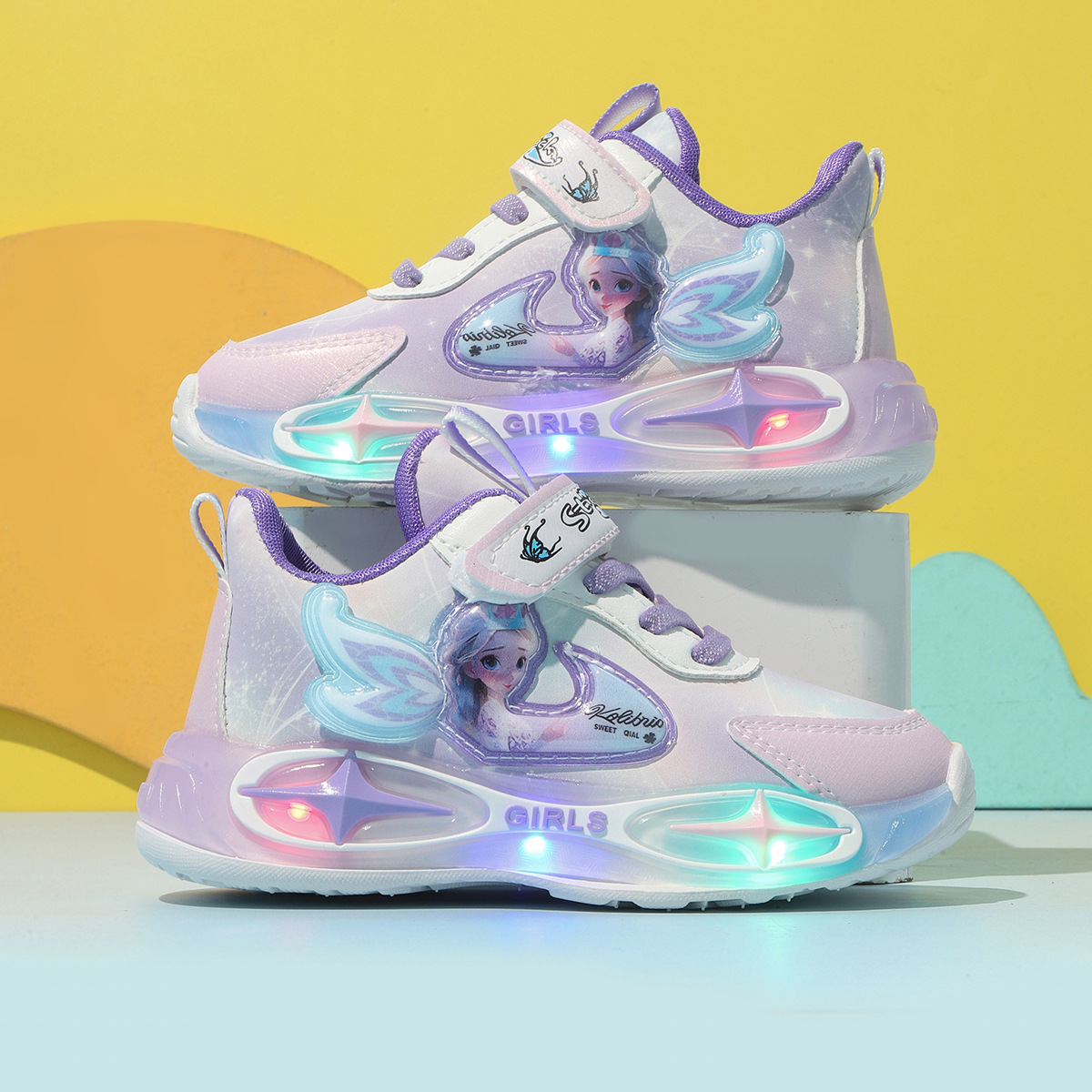 2025 Spring And Autumn New Bright Lights Girls Shoes Cartoon Fashion 1-6 Years Old Children's Shoes Wholesale Children's Sports Shoes Princess Shoes