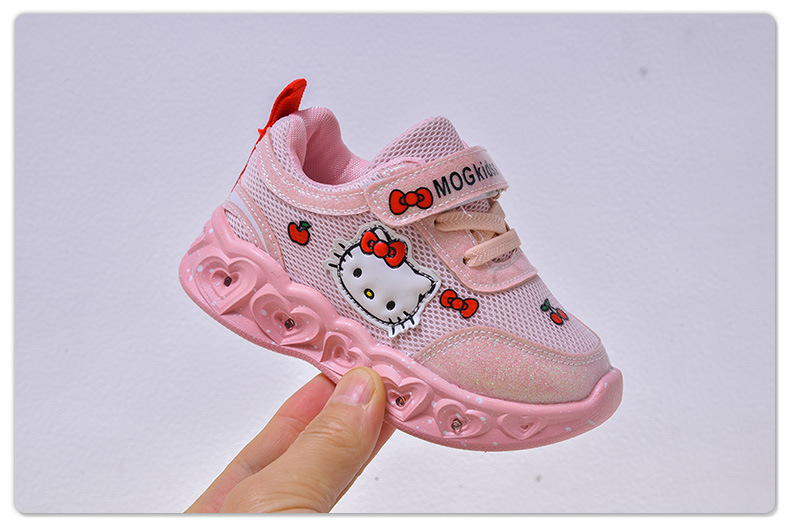 2025 Spring And Autumn New Cartoon Cat Light Children's Sports Shoes Mesh Breathable Light-emitting Shoes Children's Shoes Girls' Trendy