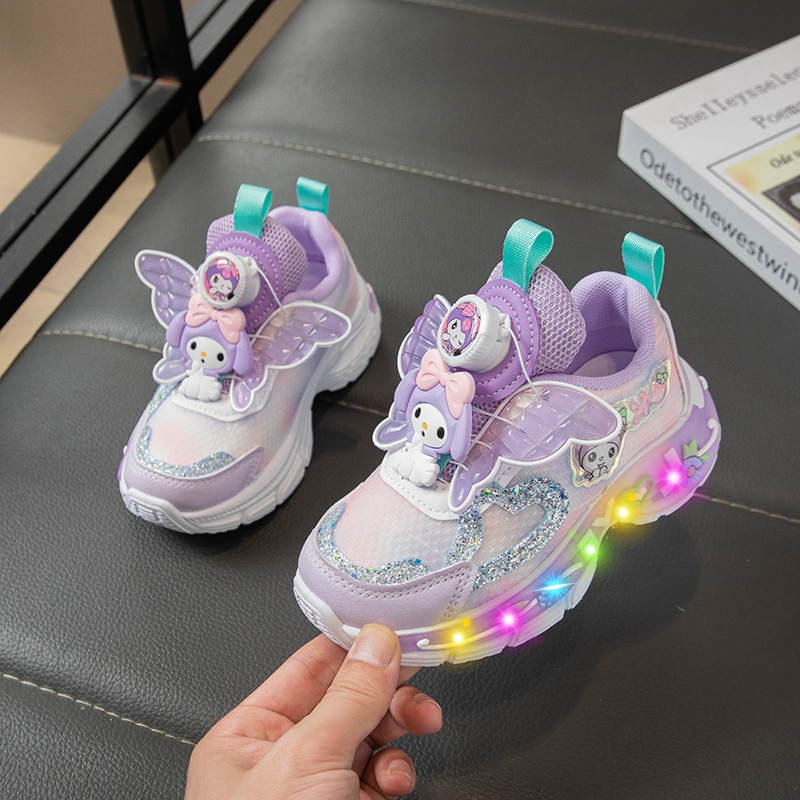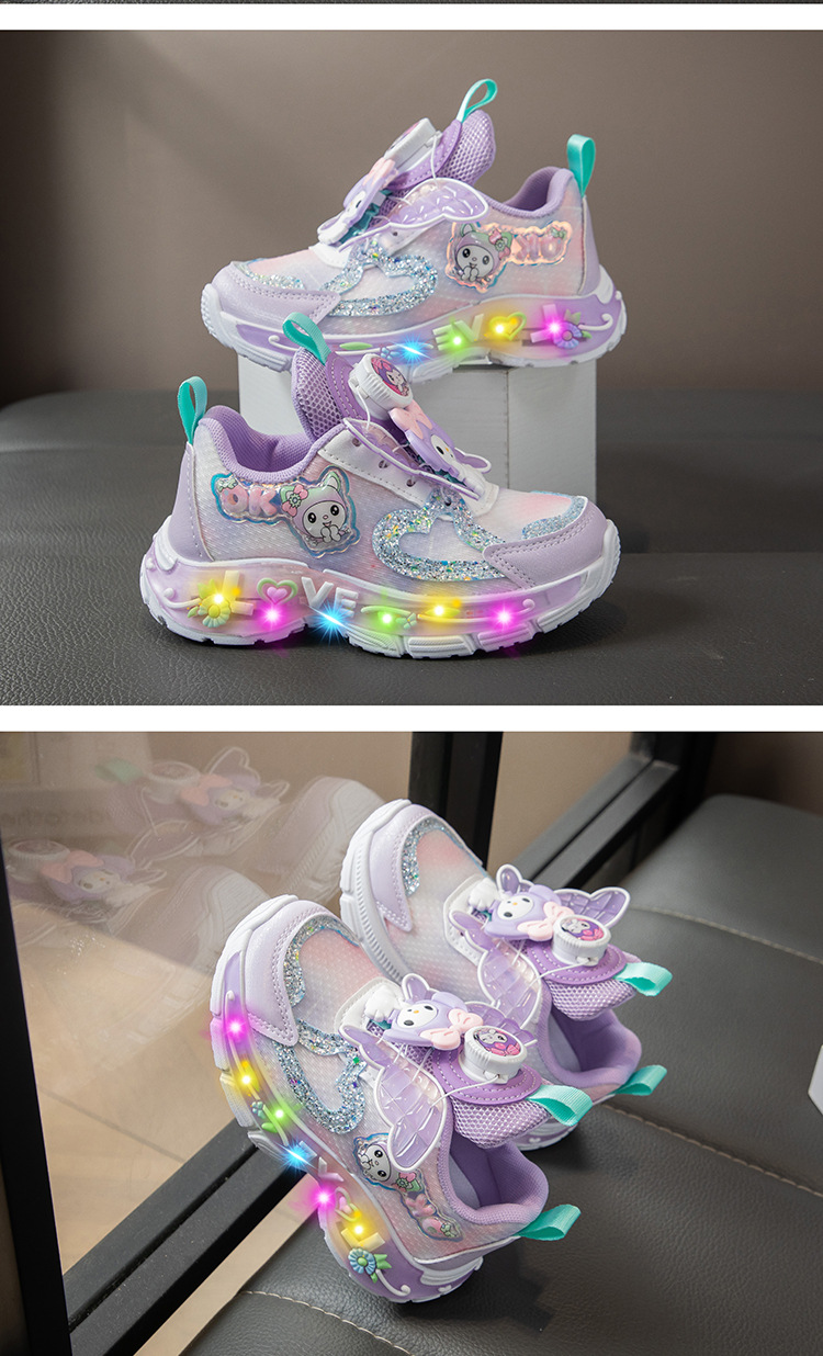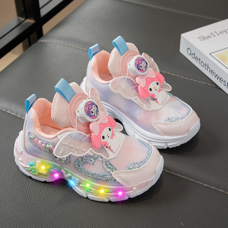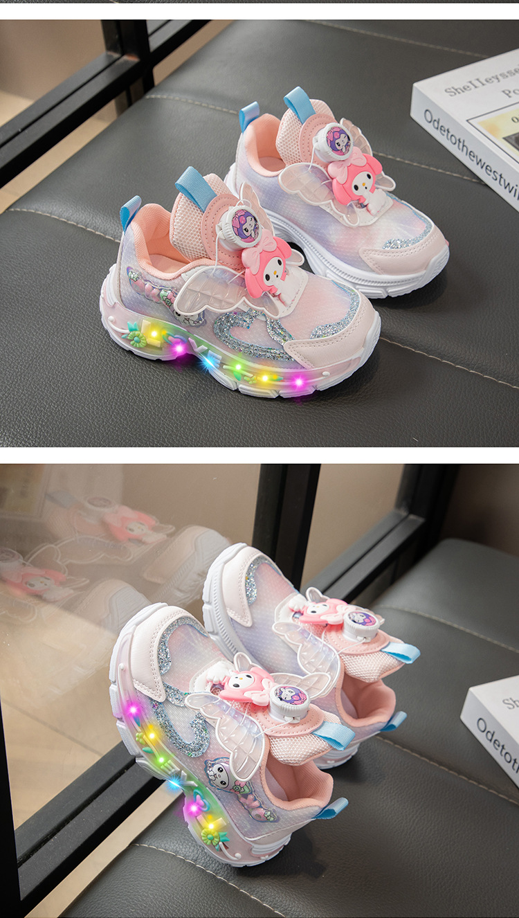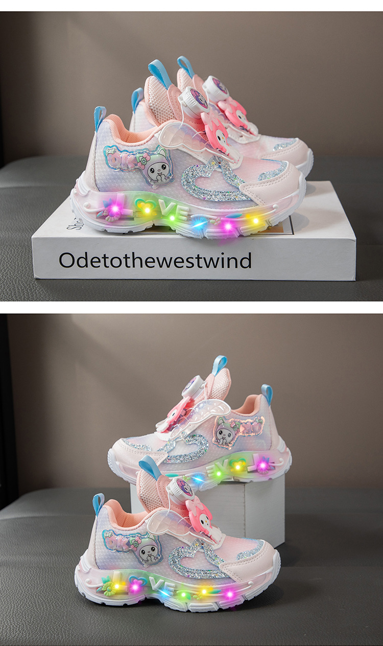 Autumn 2025 New Girls Mesh Casual Shoes Children Luminous Button Sneakers Girls School Torre Shoes Trendy