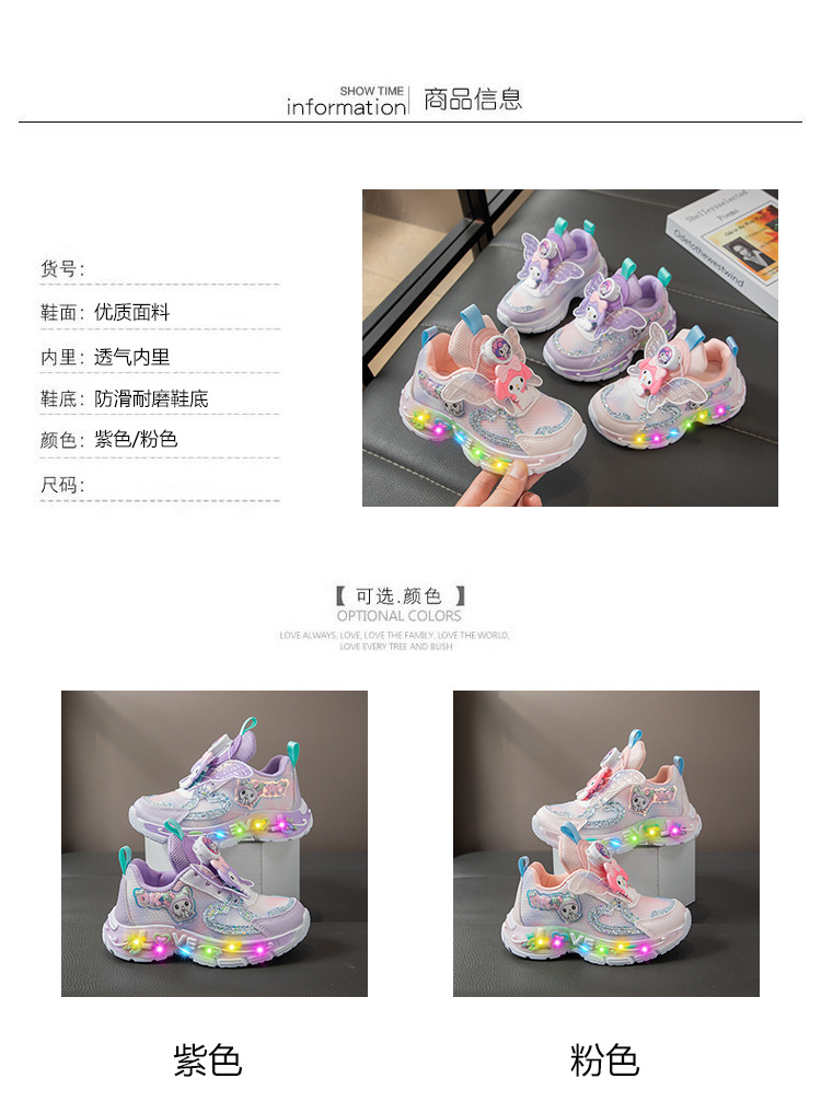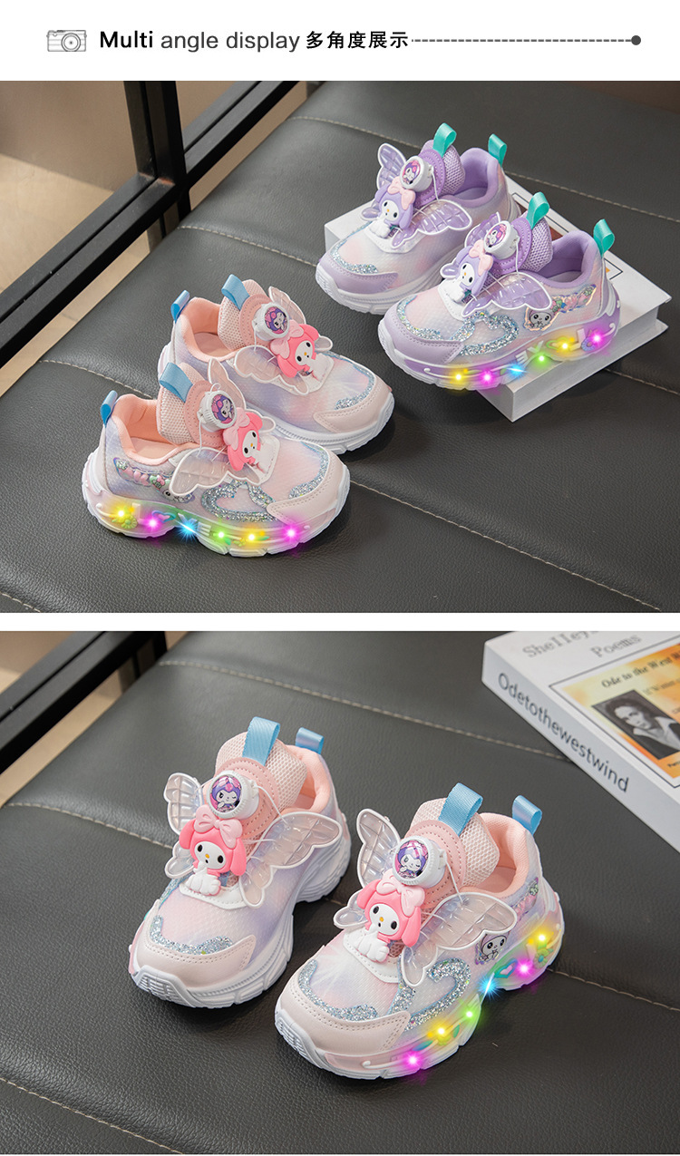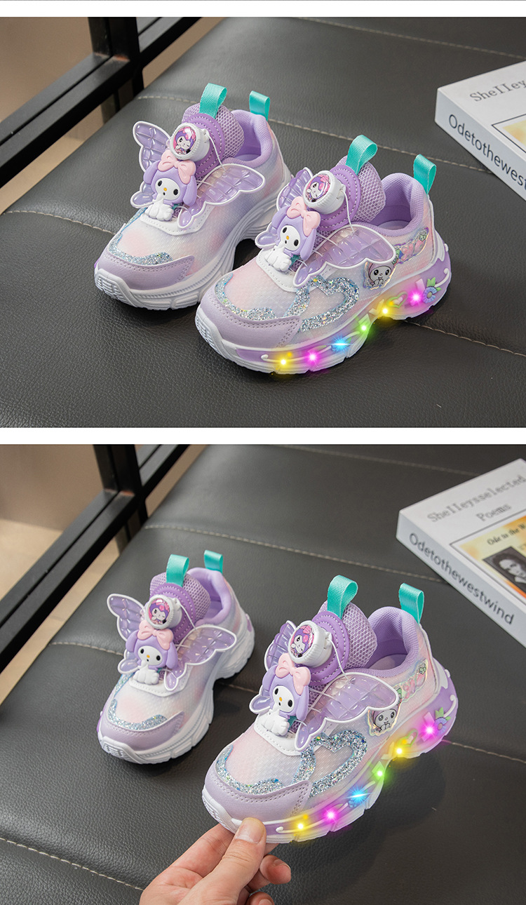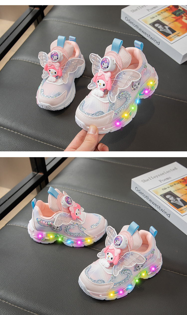 Autumn 2025 New Girls Mesh Casual Shoes Children Luminous Button Sneakers Girls School Torre Shoes Trendy