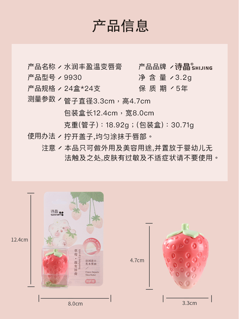 Autumn And Winter Strawberry Temperature Change Double Care Lip Balm Moisturizing And Moisturizing Lip Pattern Student Female Lip Care Lip Balm