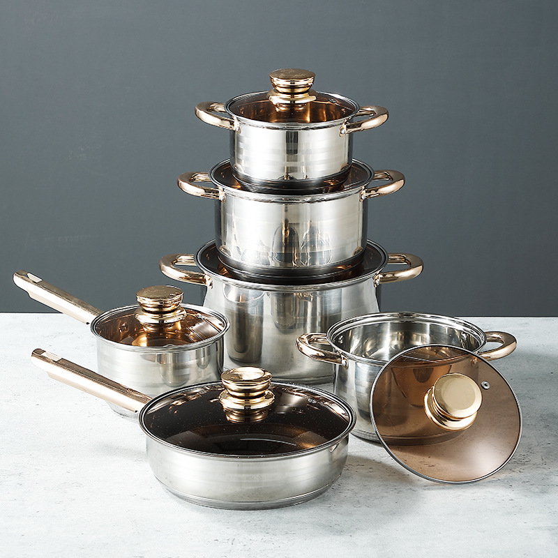 Twelve-piece Set Of European Classic Rose Gold Set Pot (Grade 5 Bottom)(16/16/18/20/24/24)