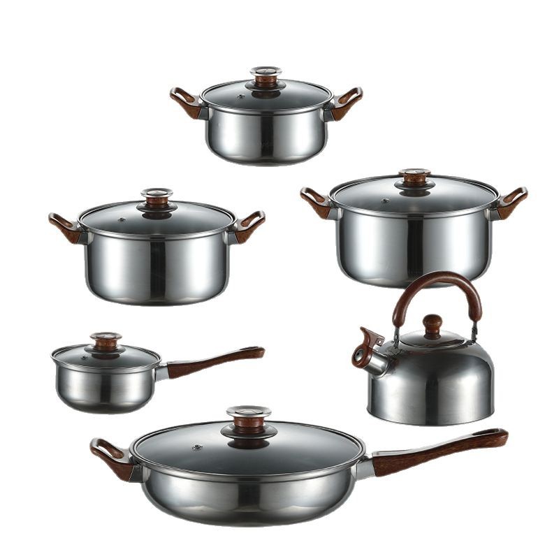 Cross-border Foreign Trade Mexico Indonesia Stainless Steel Pot Set Pot Soup Pot Milk Pot Frying Pot Kettle 12pcs Pot