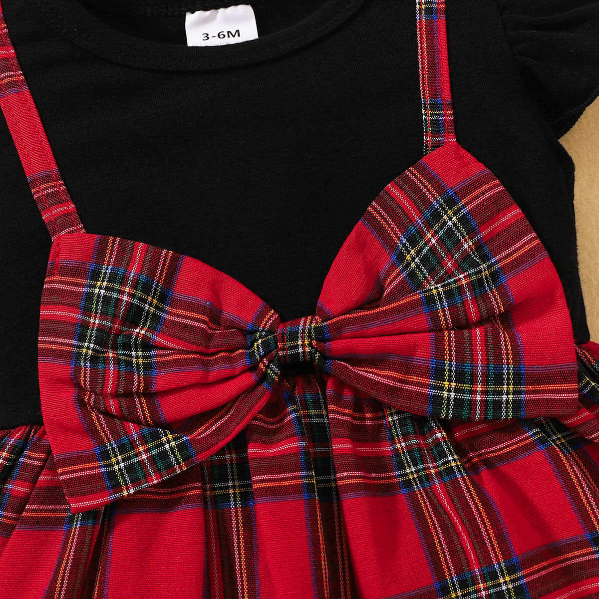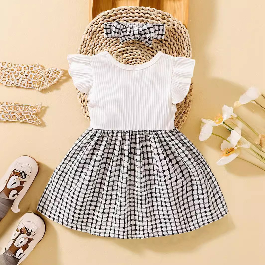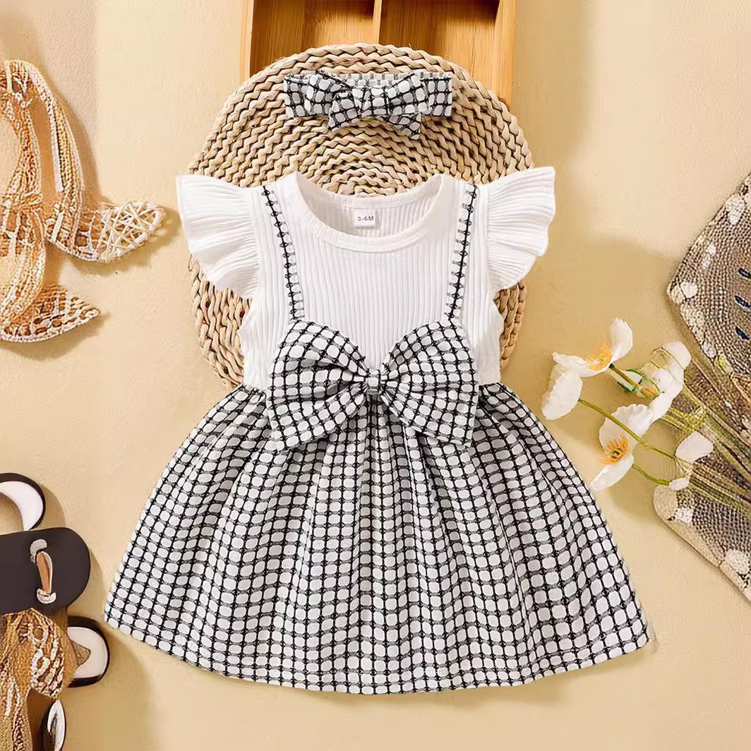 Cross-border INS New Dress Europe And The United States For Infants And Young Children Pit Stitching Large Butterfly Check Dress Head Tide