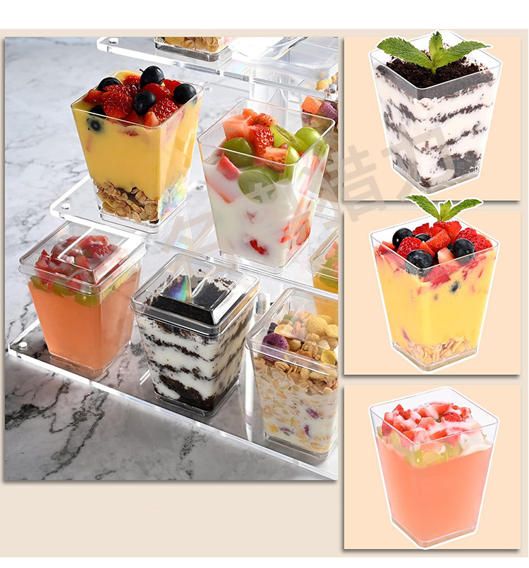 Disposable Ps Goblet Mousse Cup Transparent Plastic Dessert Cup Square Cup Yogurt Parfait Cup Ice Cream Pudding Cup
