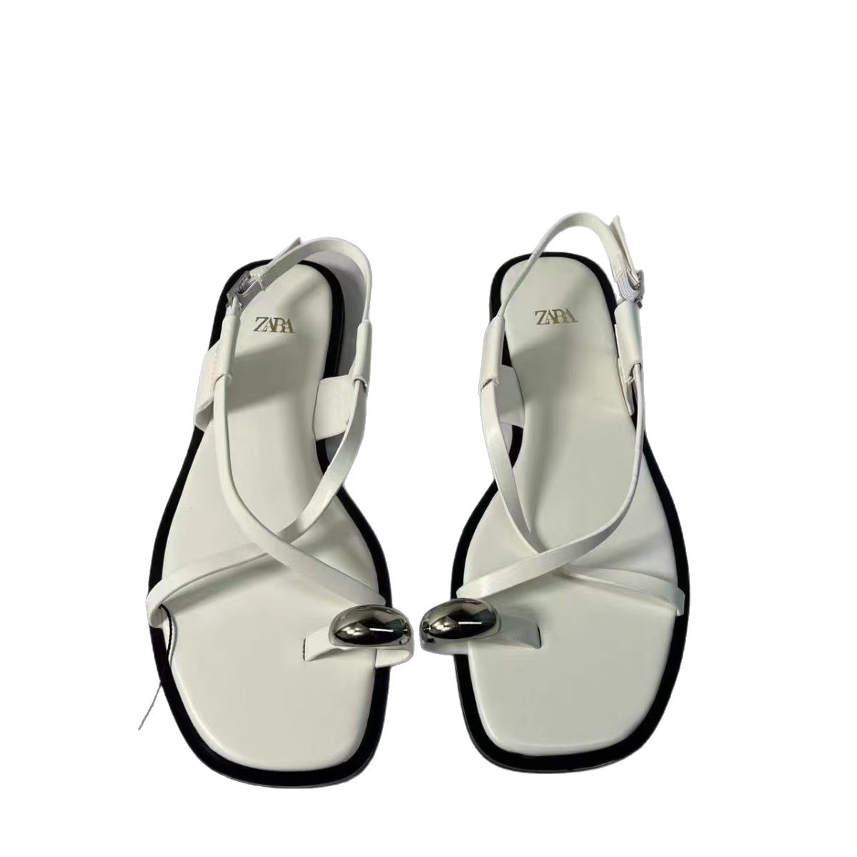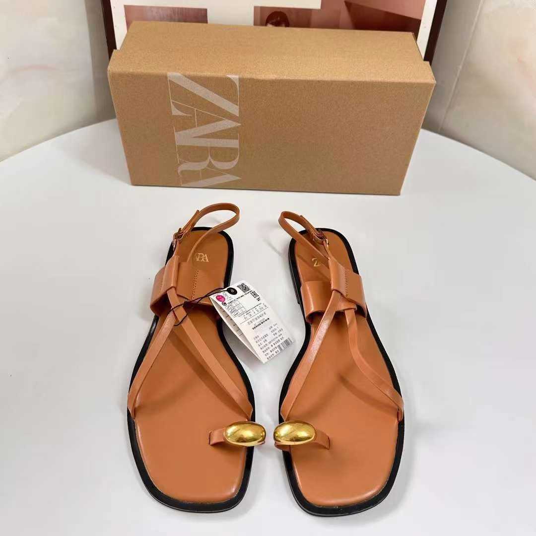 Flat Sandals Women's ZA2024 Summer New Holiday Fashion Casual Beach Shoes All-match Soft Bottom Clip Toe Roman Shoes