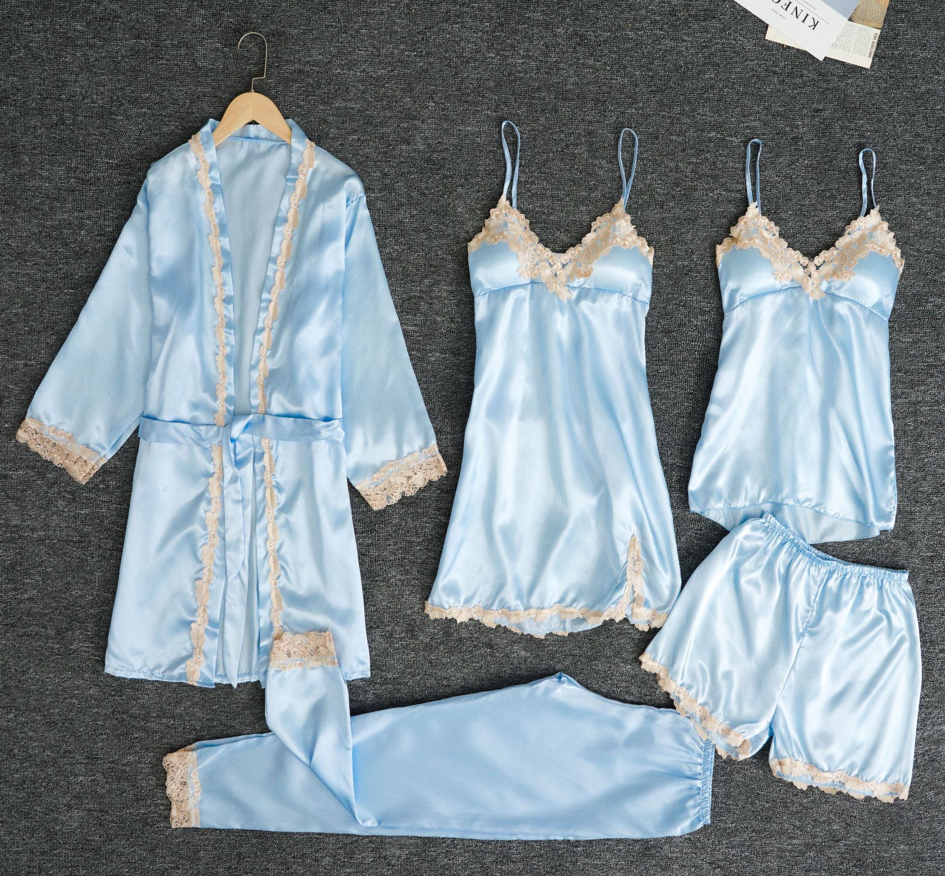 Foreign Trade Cross-border New Style Pajamas With Chest Pad Silk Sexy Sling Sling Golden Flower Five-piece Set Pajamas Thin Home Clothes
