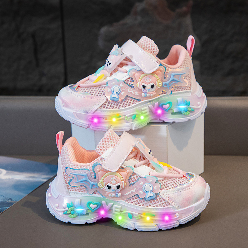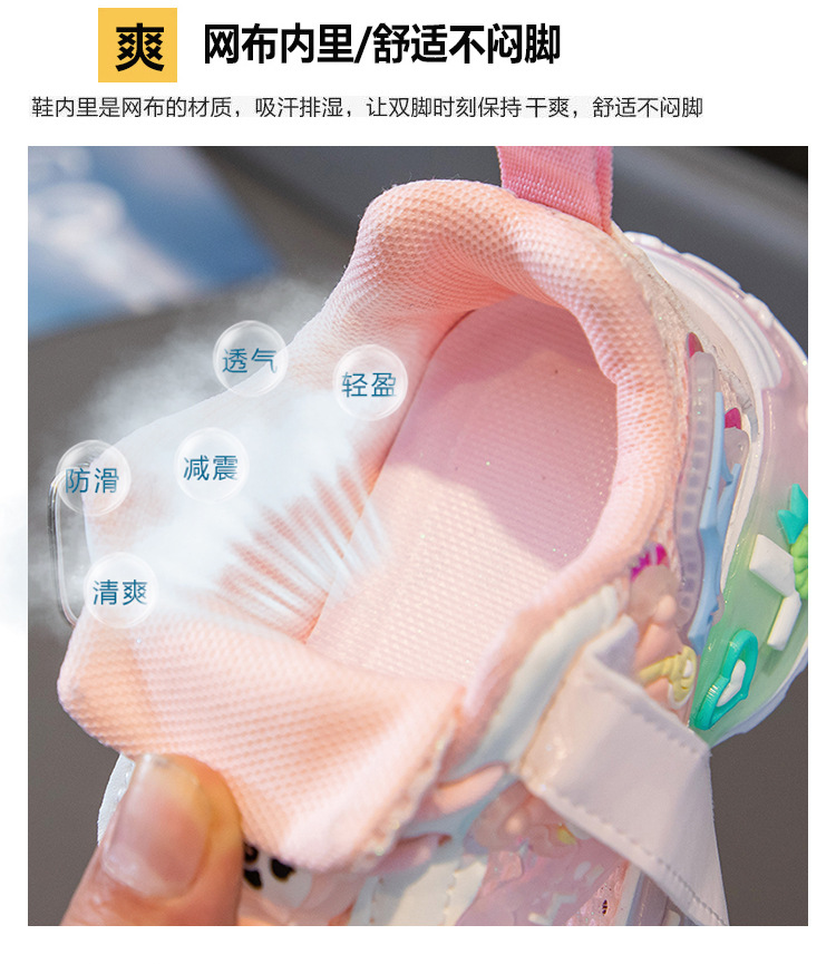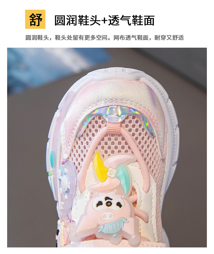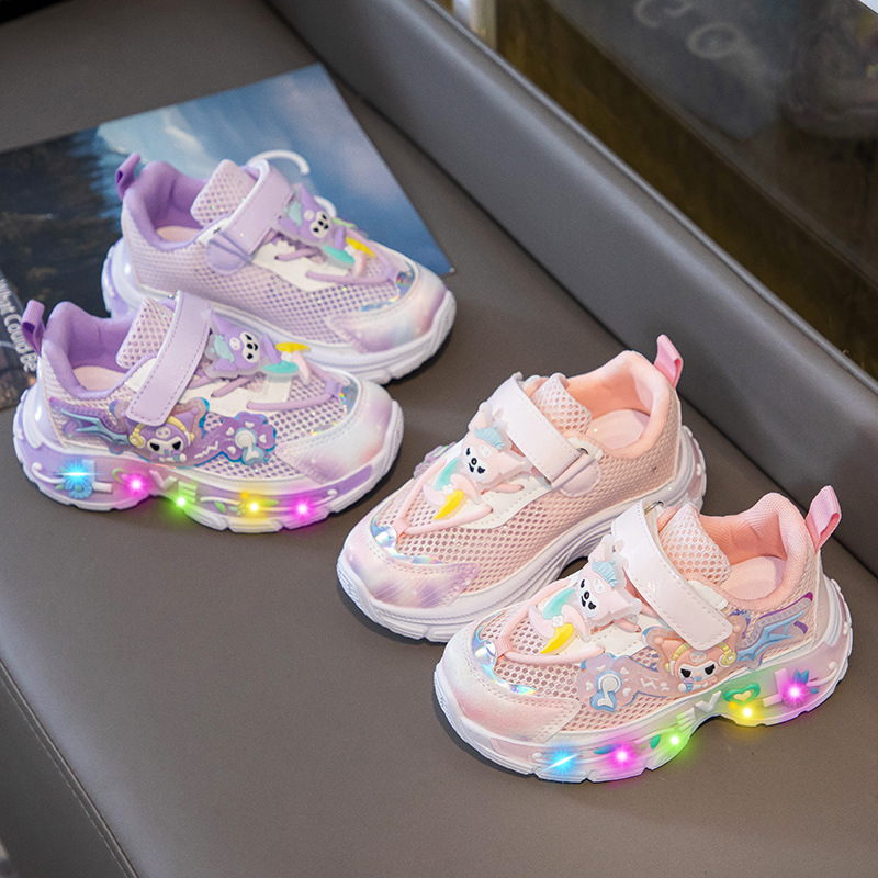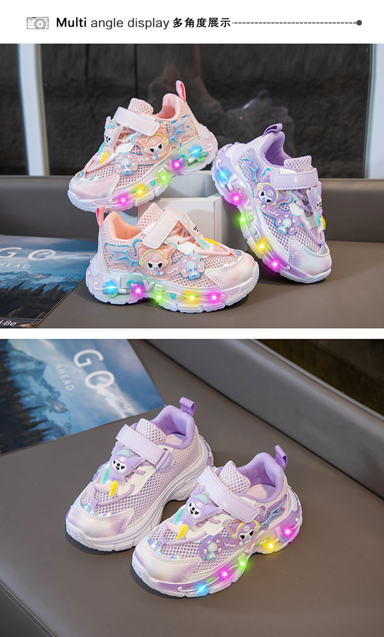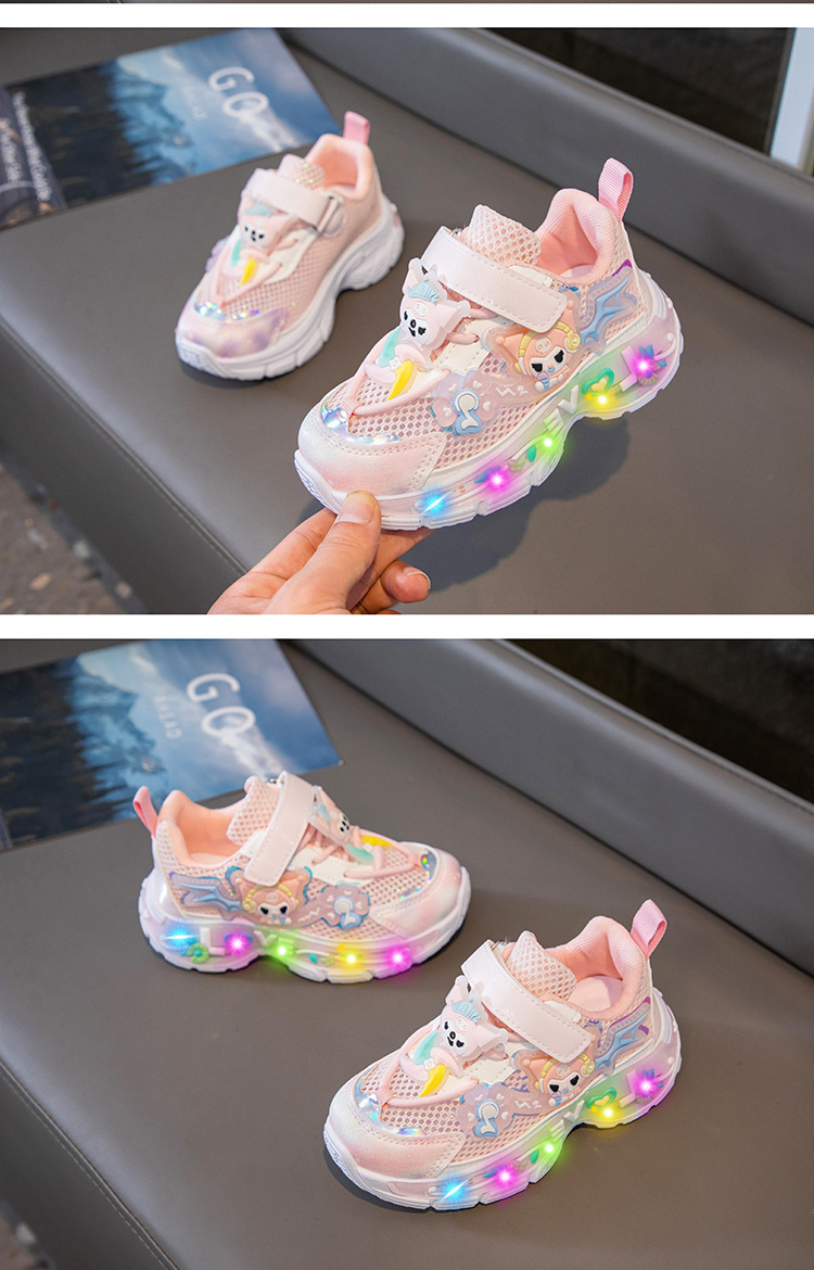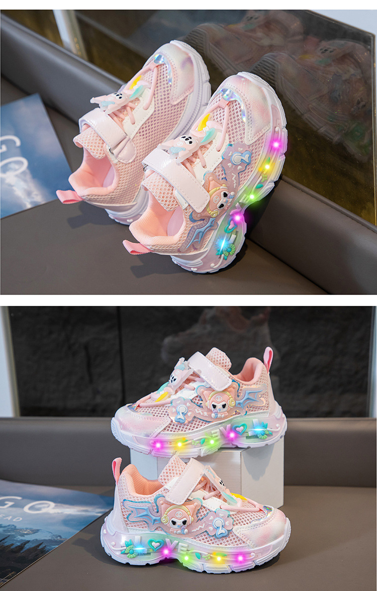 Girls Sneakers 2025 Summer New Girls Campus Breathable Princess Shoes Luminous Casual Mesh Running Shoes