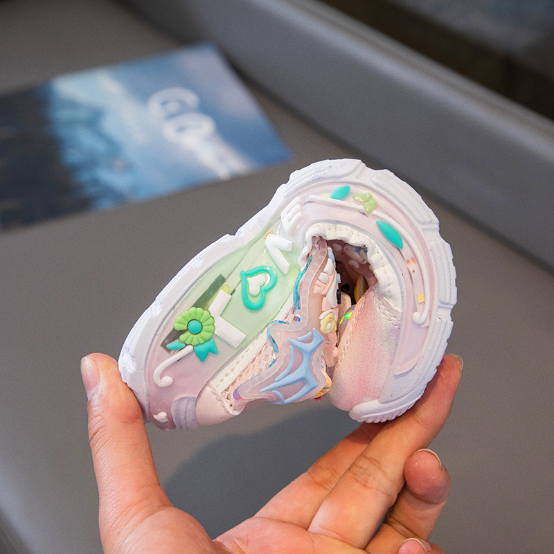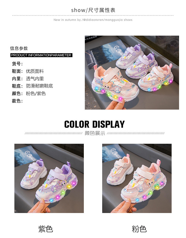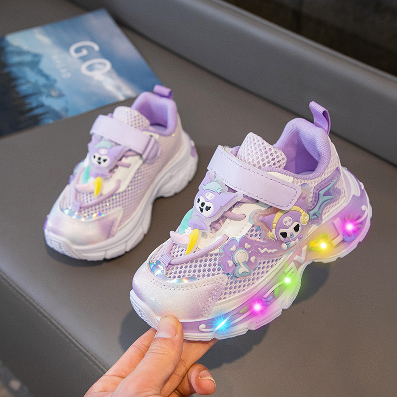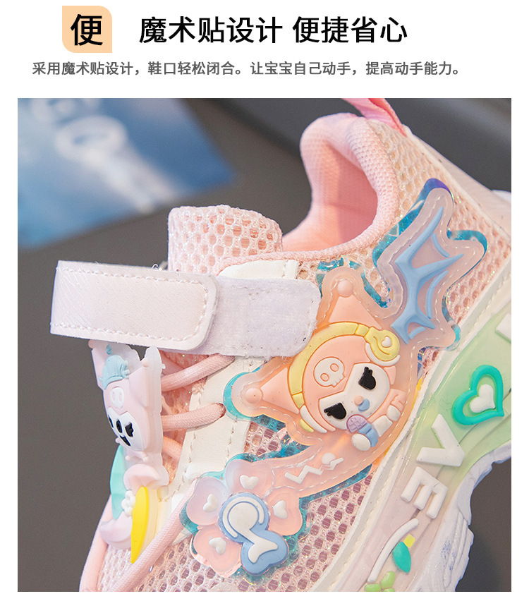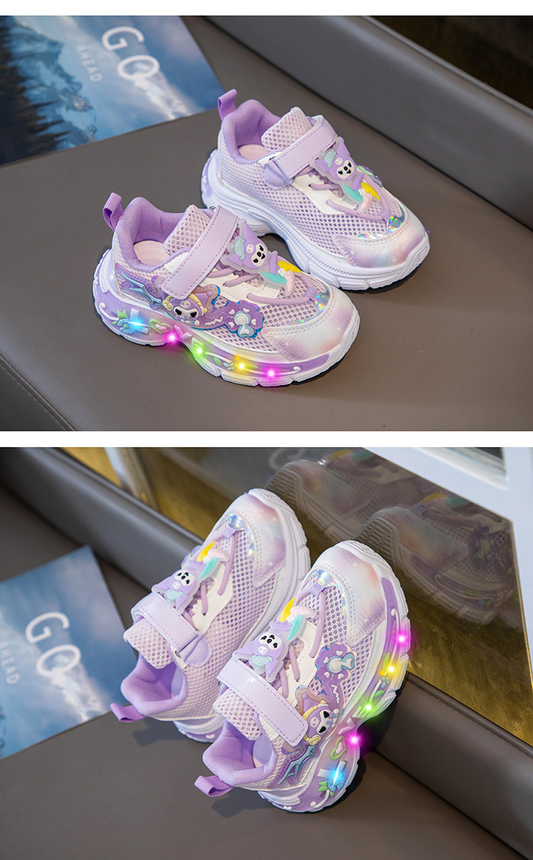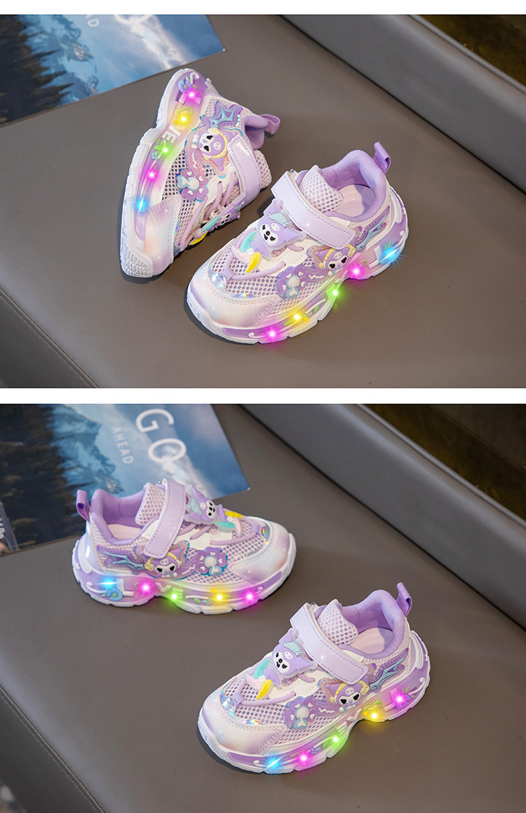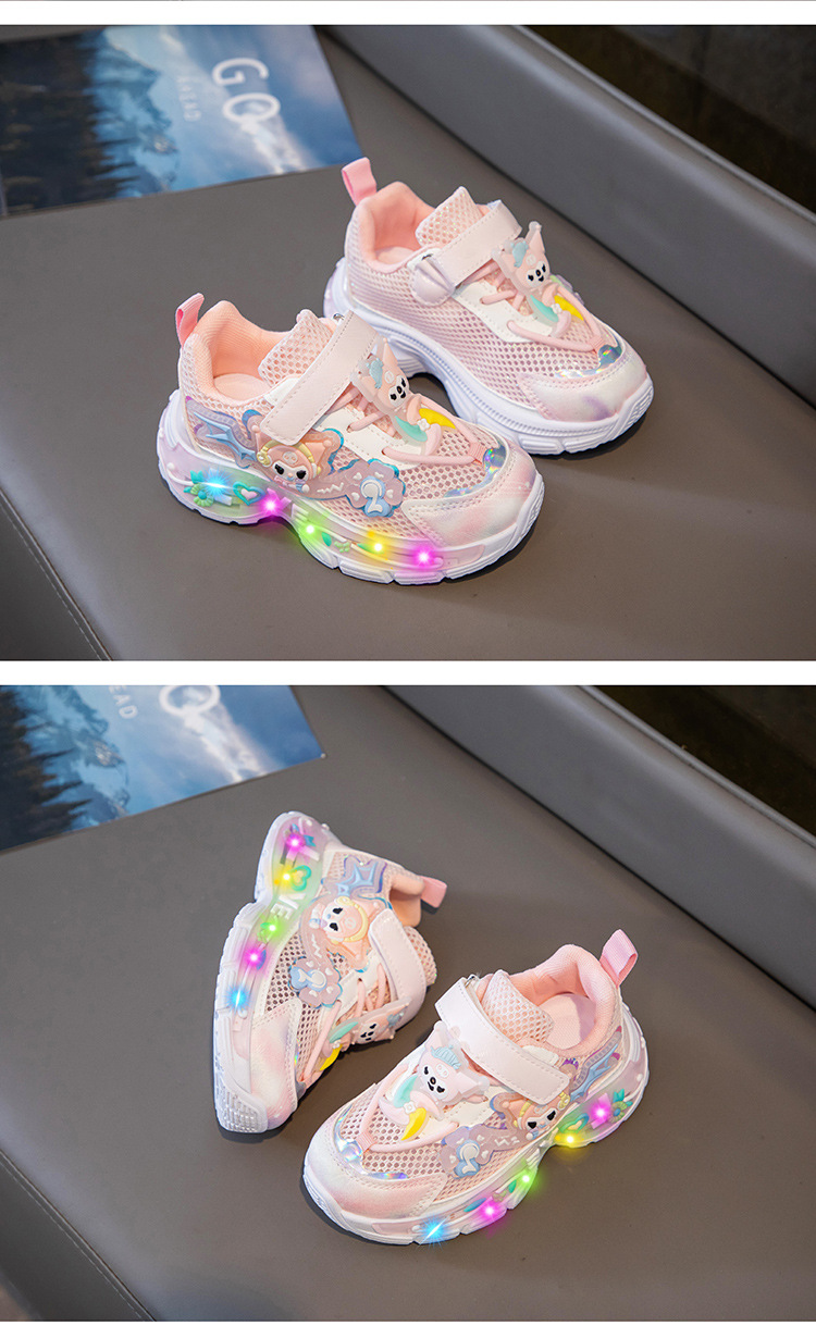 Girls Sneakers 2025 Summer New Girls Campus Breathable Princess Shoes Luminous Casual Mesh Running Shoes