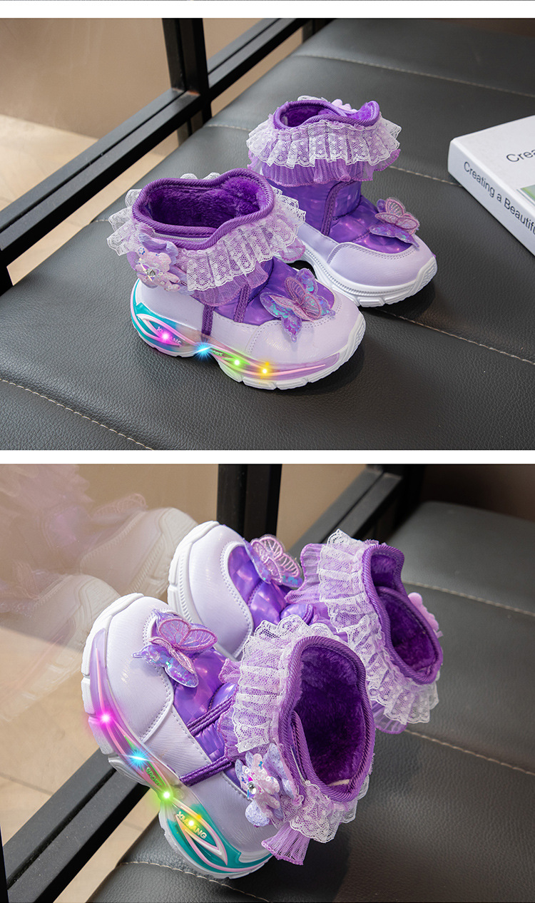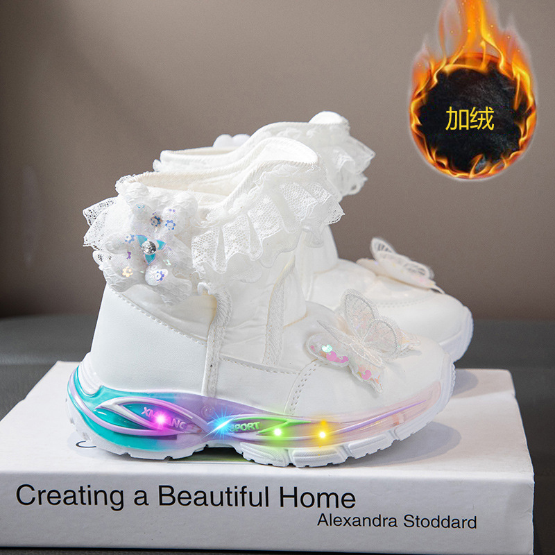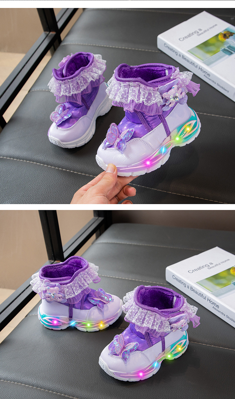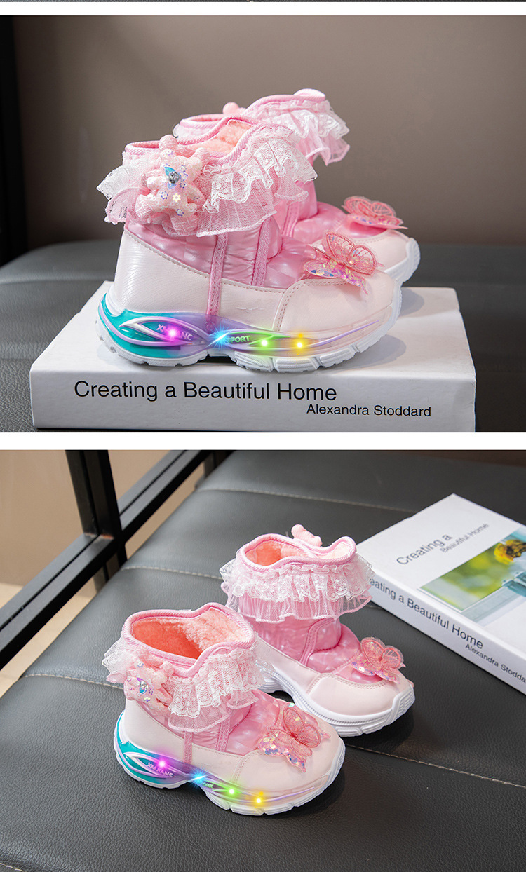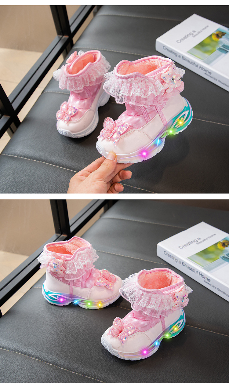 Girls Snow Boots 2025 Winter New Velvet Casual Princess Shoes Girls School Cotton Shoes Children Light-emitting Shoes Tide