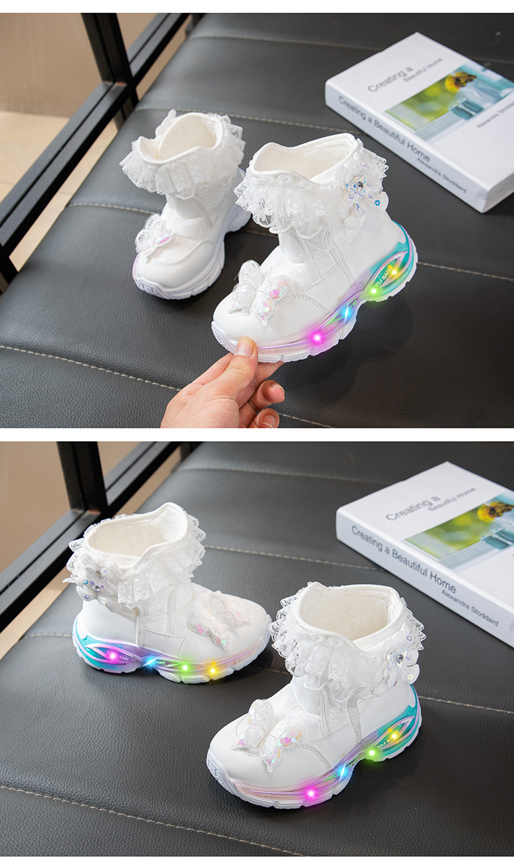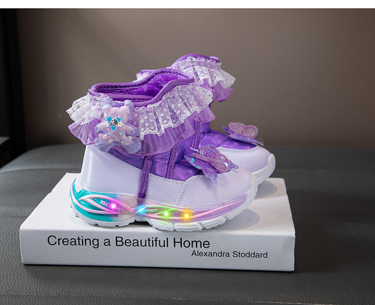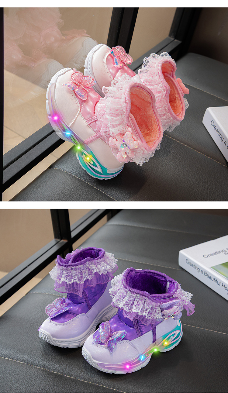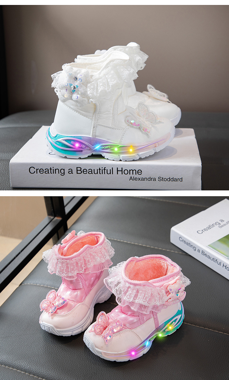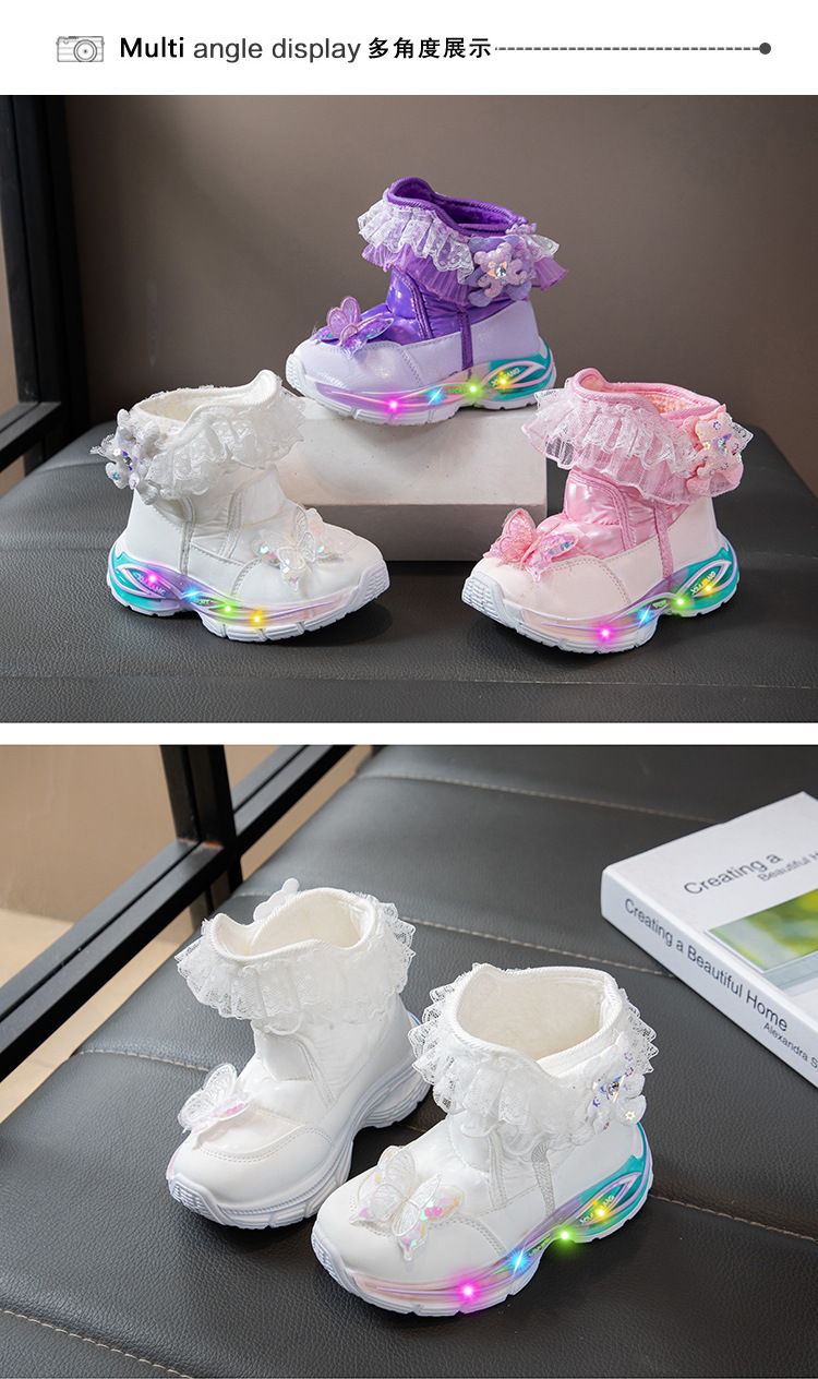 Girls Snow Boots 2025 Winter New Velvet Casual Princess Shoes Girls School Cotton Shoes Children Light-emitting Shoes Tide