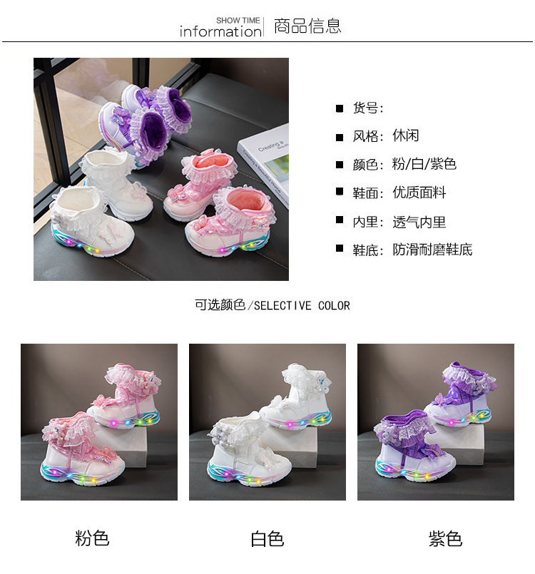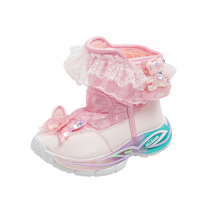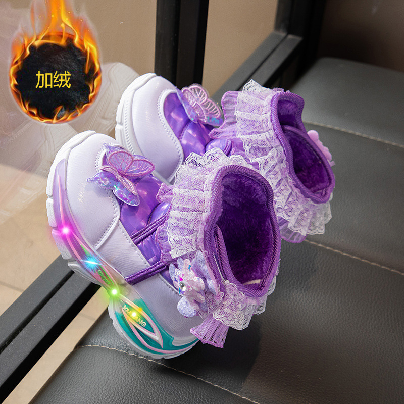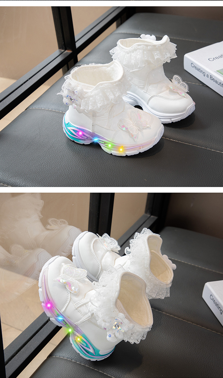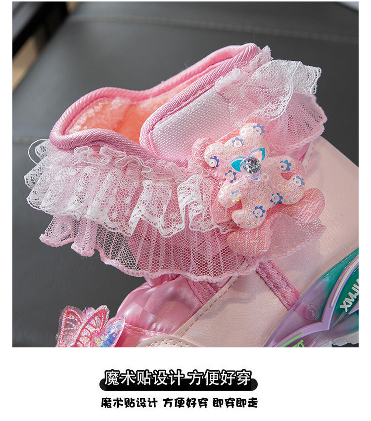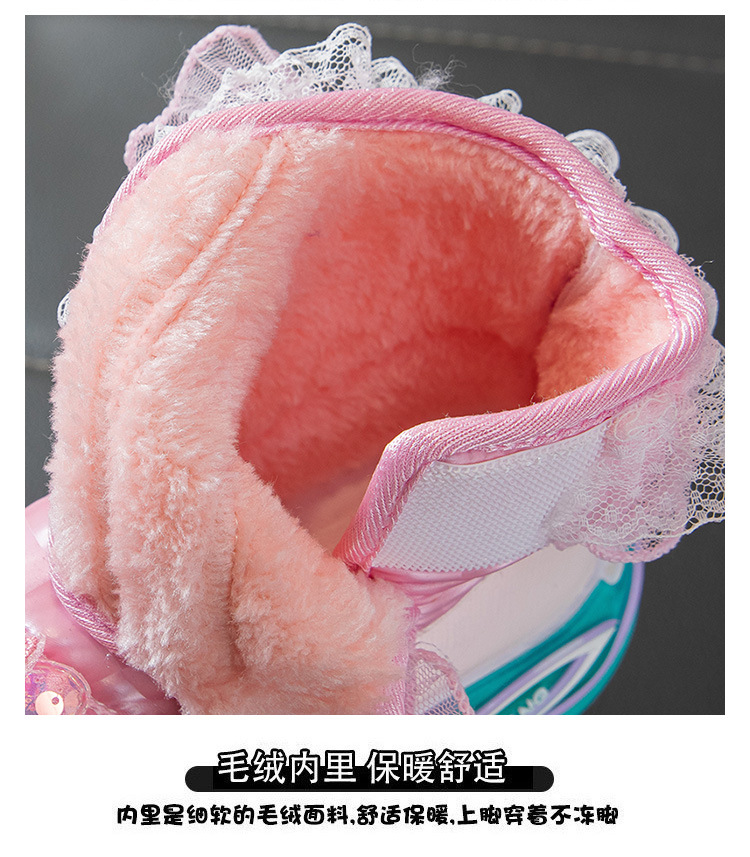 Girls Snow Boots 2025 Winter New Velvet Casual Princess Shoes Girls School Cotton Shoes Children Light-emitting Shoes Tide
