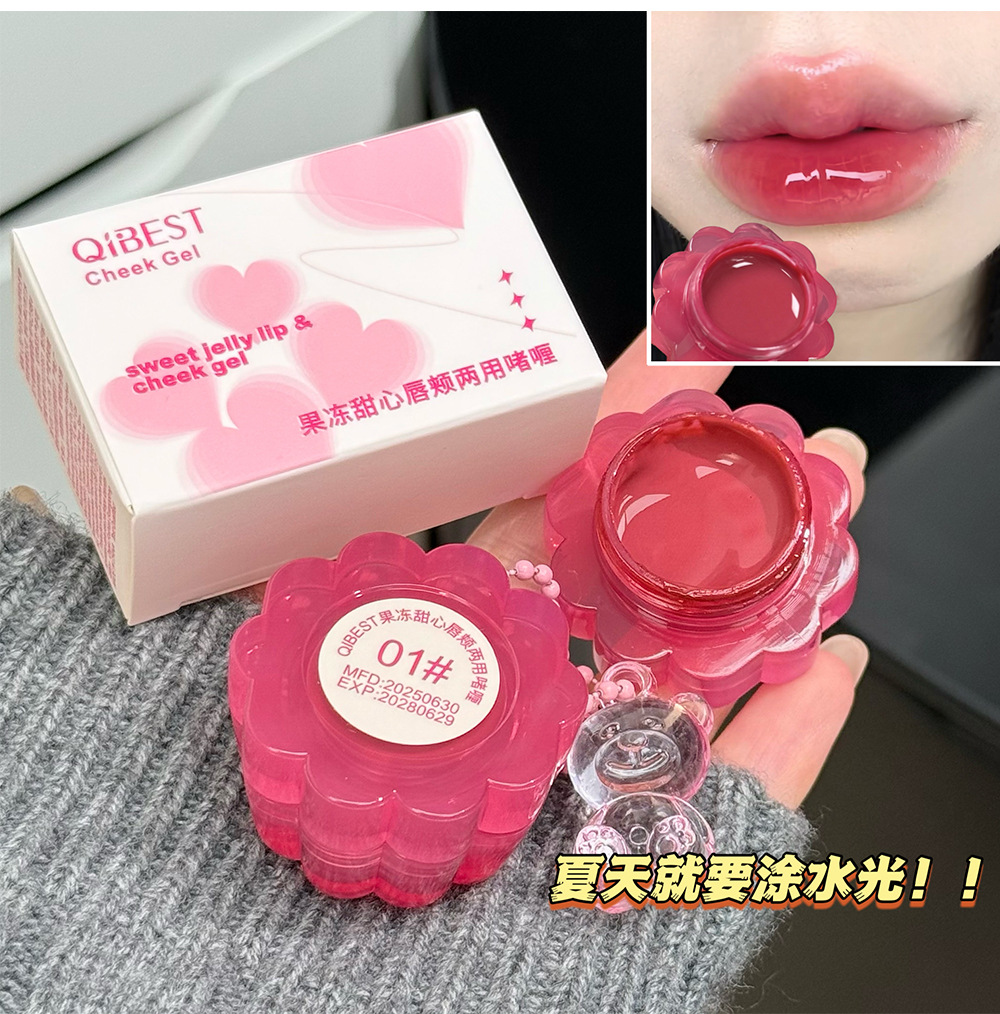 QIBEST Jelly Sweetheart Lip And Cheek Dual-use Gel Glaze Lip Frozen Aqua Color Doodle Lip And Cheek Blush Cream