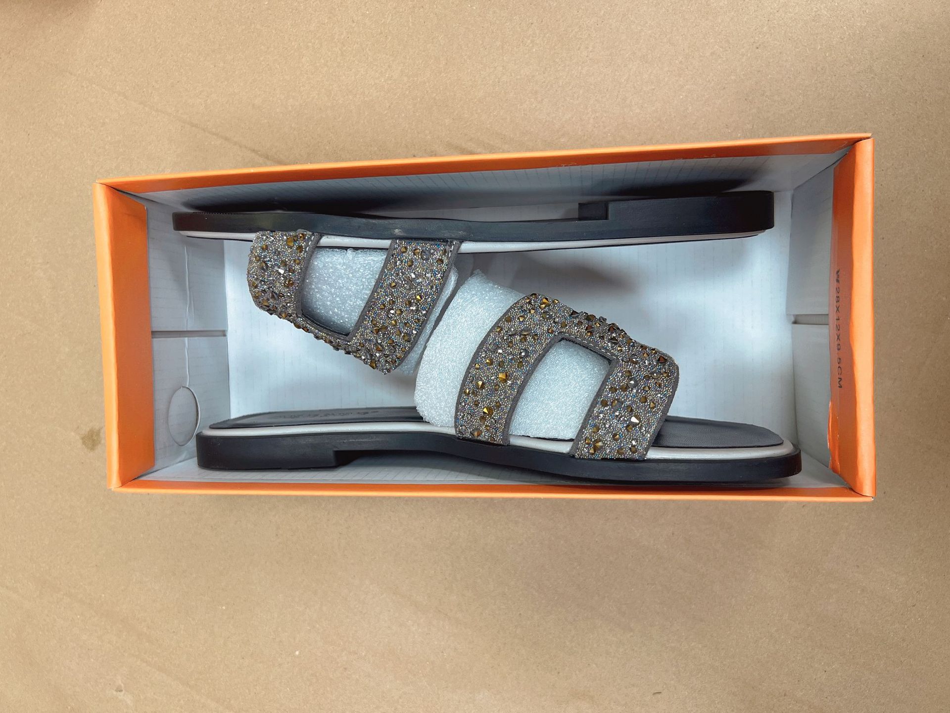 Spot Internet Popular Slippers Women's Summer Wear Fashion Rhinestone All-match Flat Slippers Beach Sandals Women's 2025 New Arrival