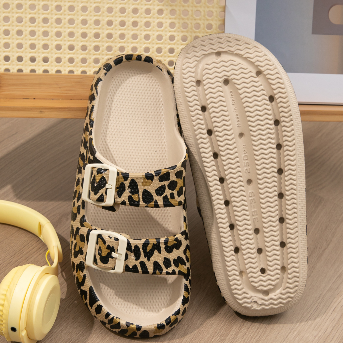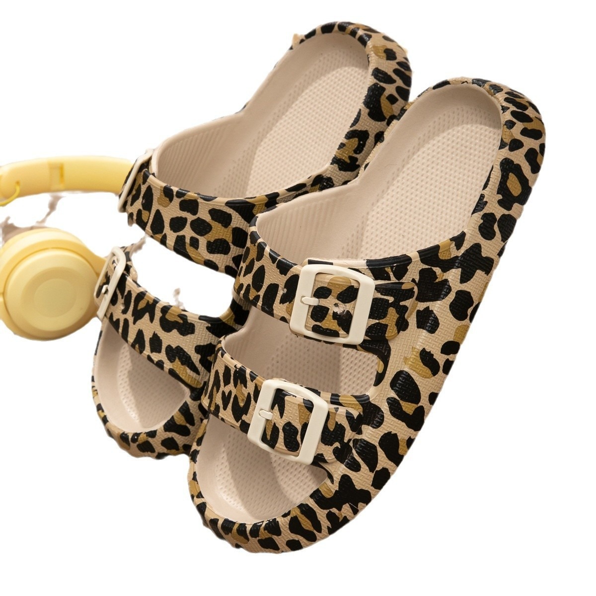 2025 New Leopard Print Thick Bottom Double Strip Soft Bottom Men's Fashionable Double-breasted Snake Print Slippers Women's Cross-border