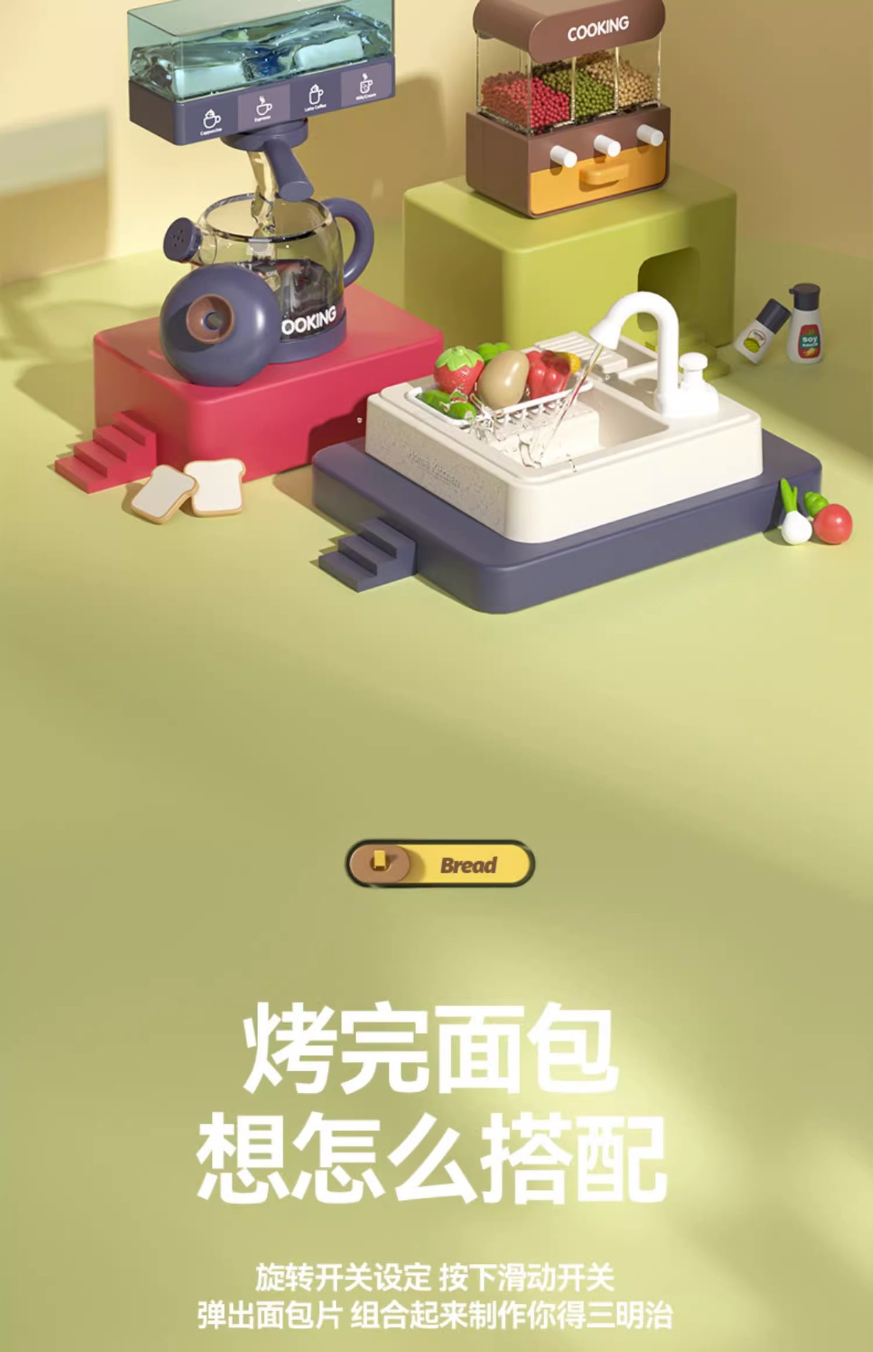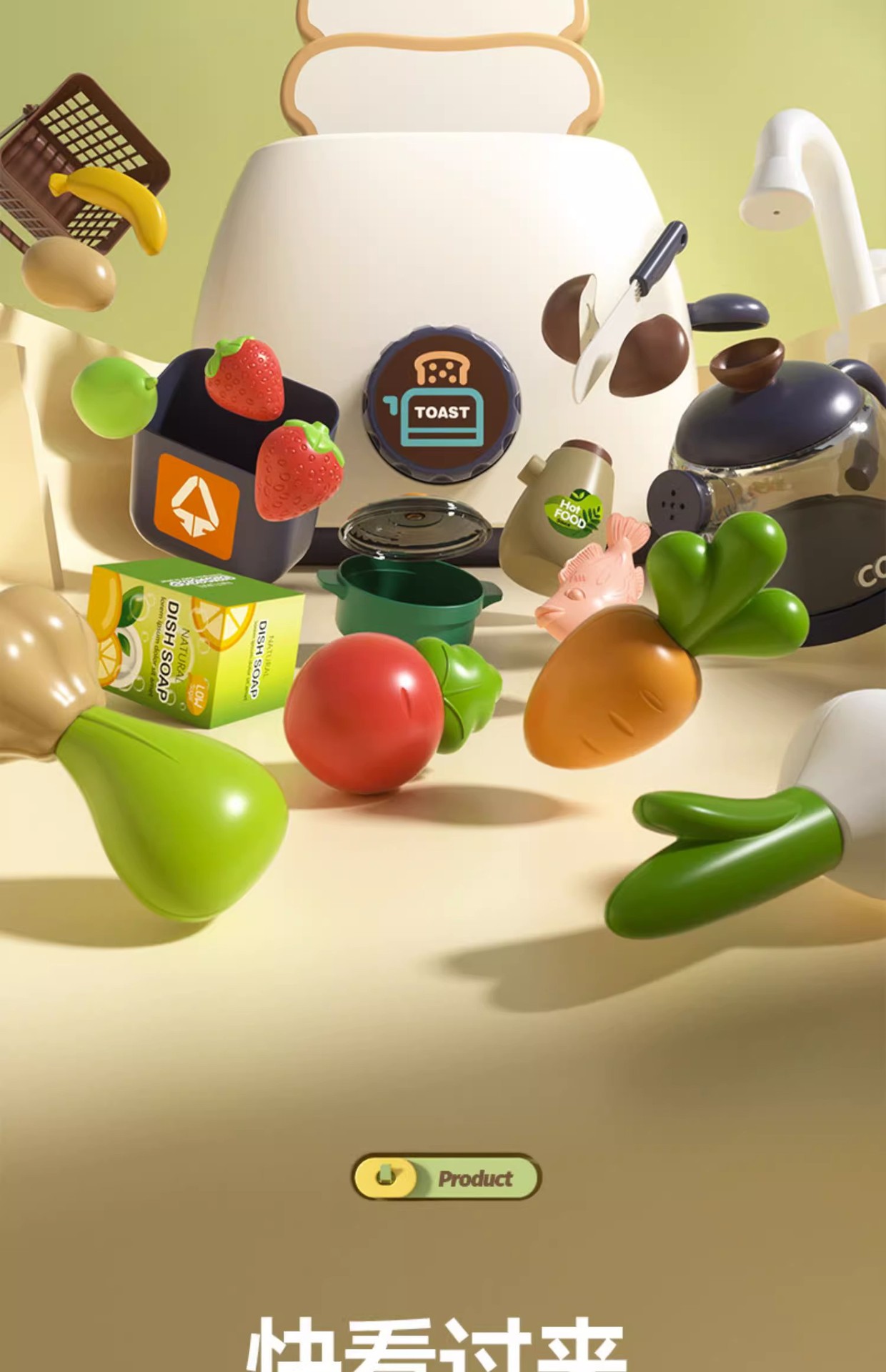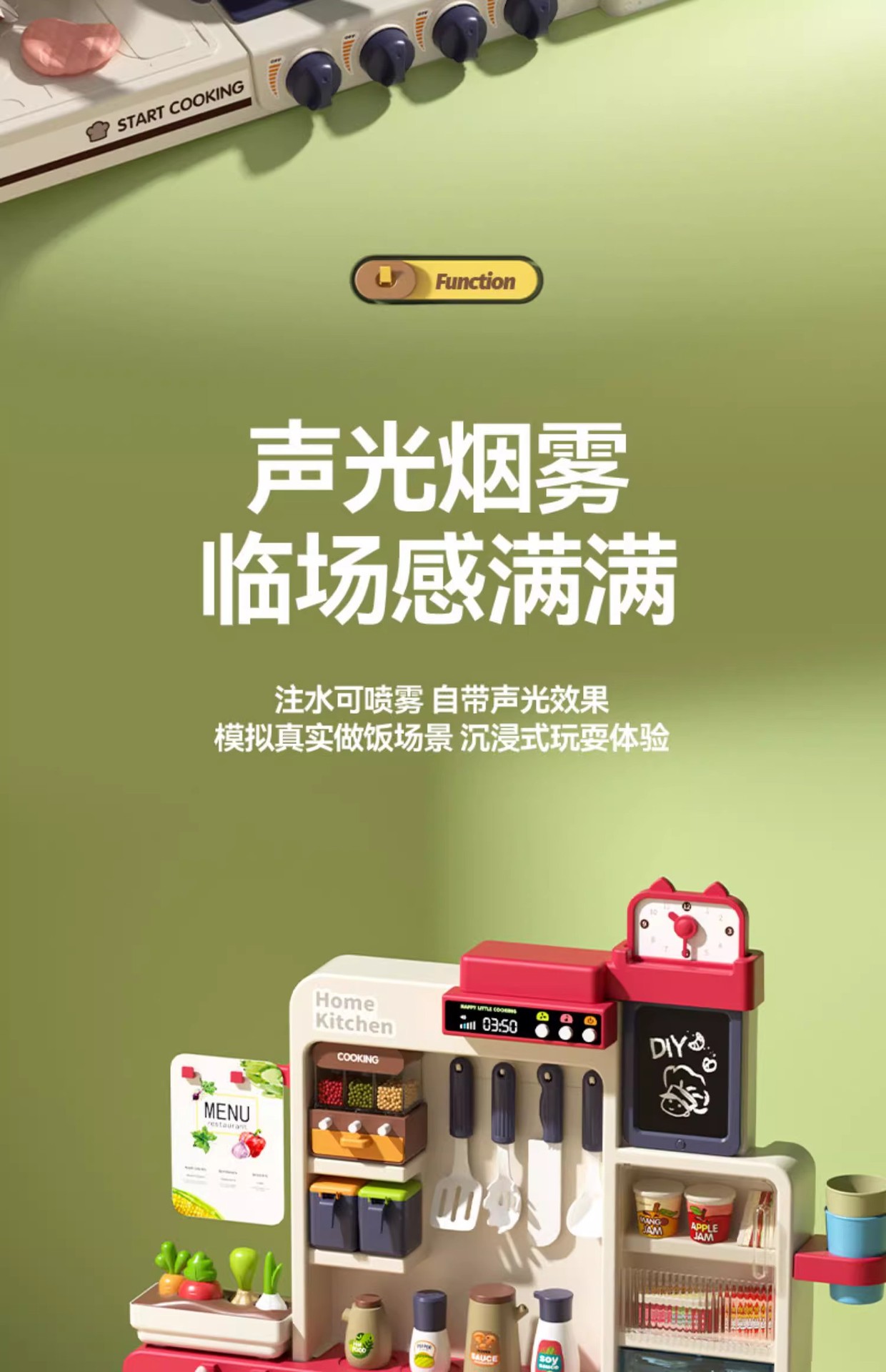 80cm-green [64-piece Set/gift Box/spray Sound And Light/water Outlet/writing Board/storage Basket] Apron To Send Battery