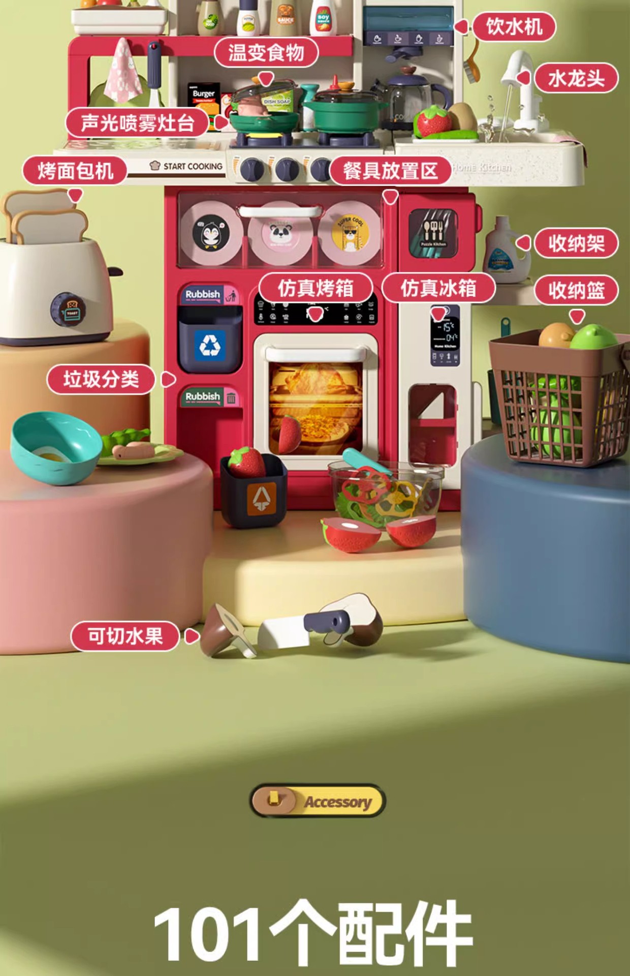 80cm-red [101-piece Set] Charging Set Egg Steamer Shopping Cart Chicele Steamer Apron