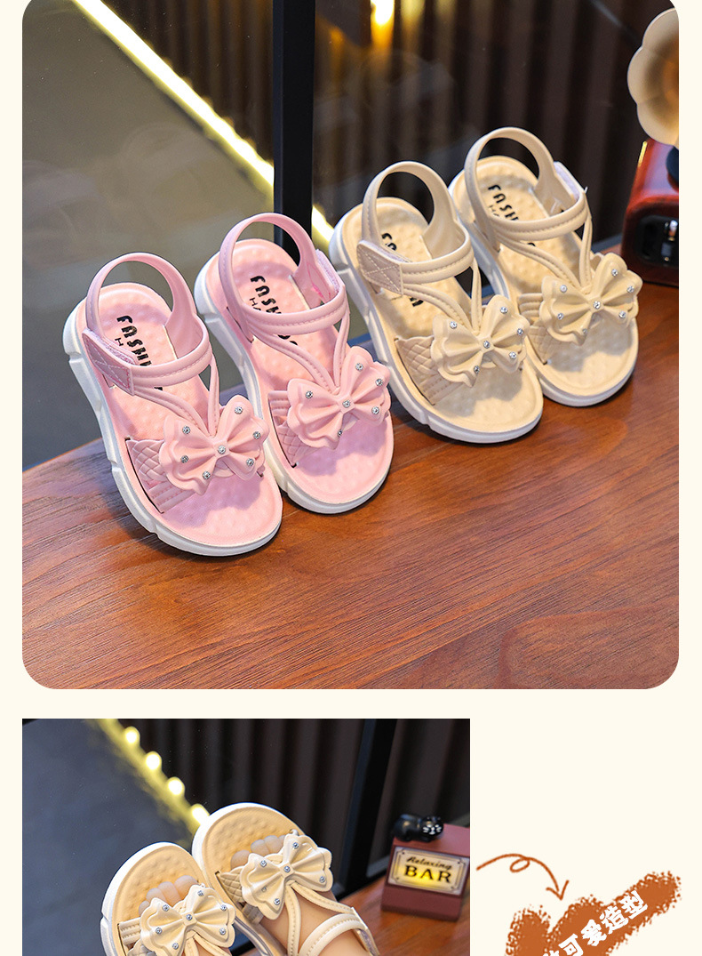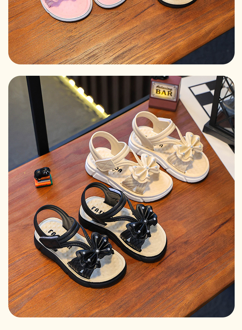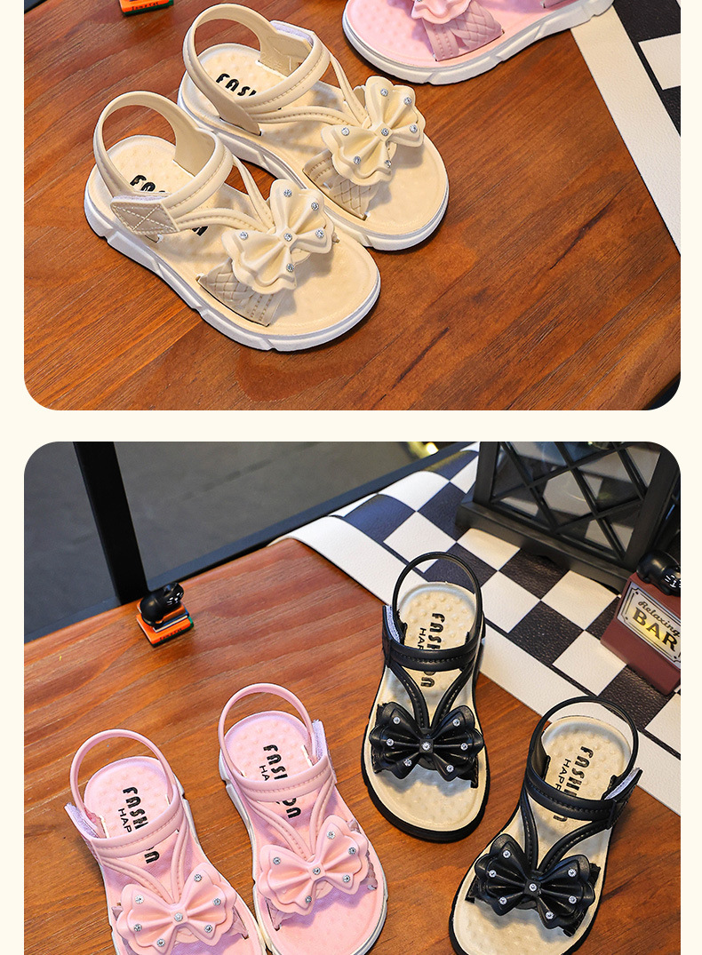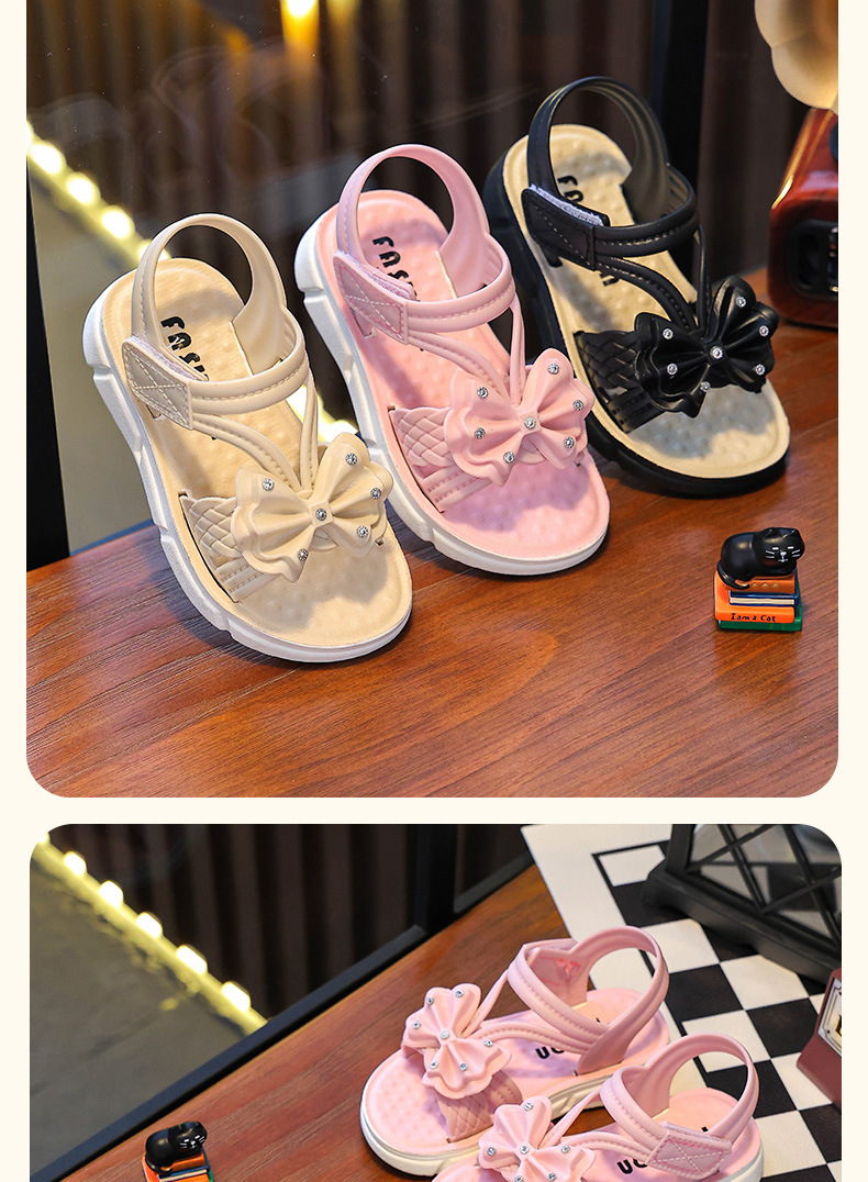Children's Sandals Summer New Arrival Bow All-Match Non-Slip Girl Outer Wear Soft-Sole Student Princess Beach Sandals