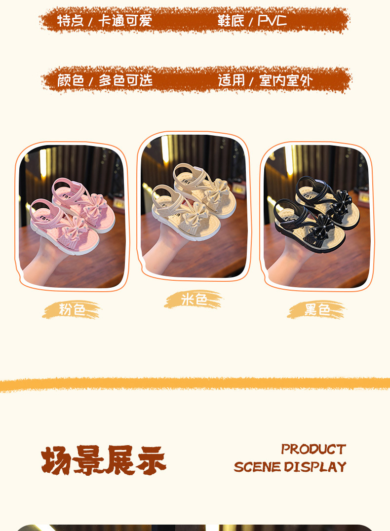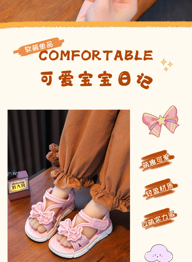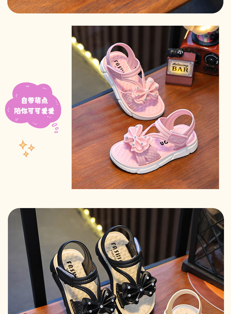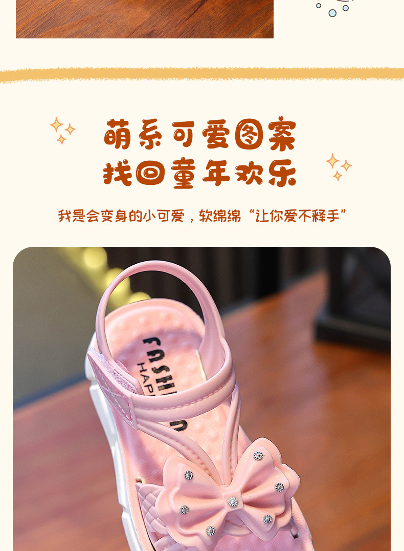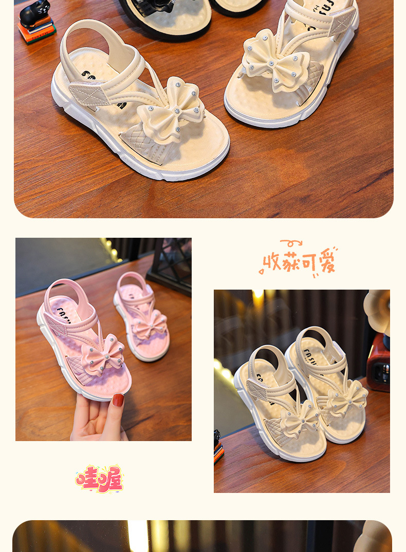 Children's Sandals Summer New Arrival Bow All-Match Non-Slip Girl Outer Wear Soft-Sole Student Princess Beach Sandals