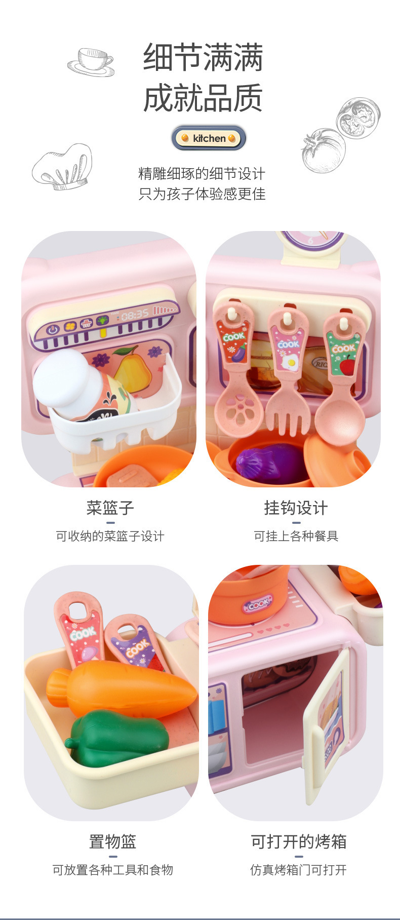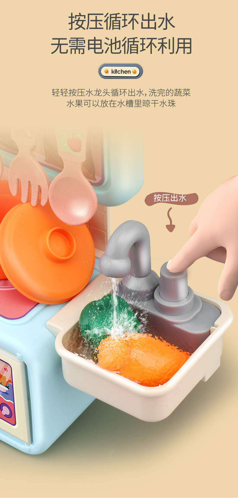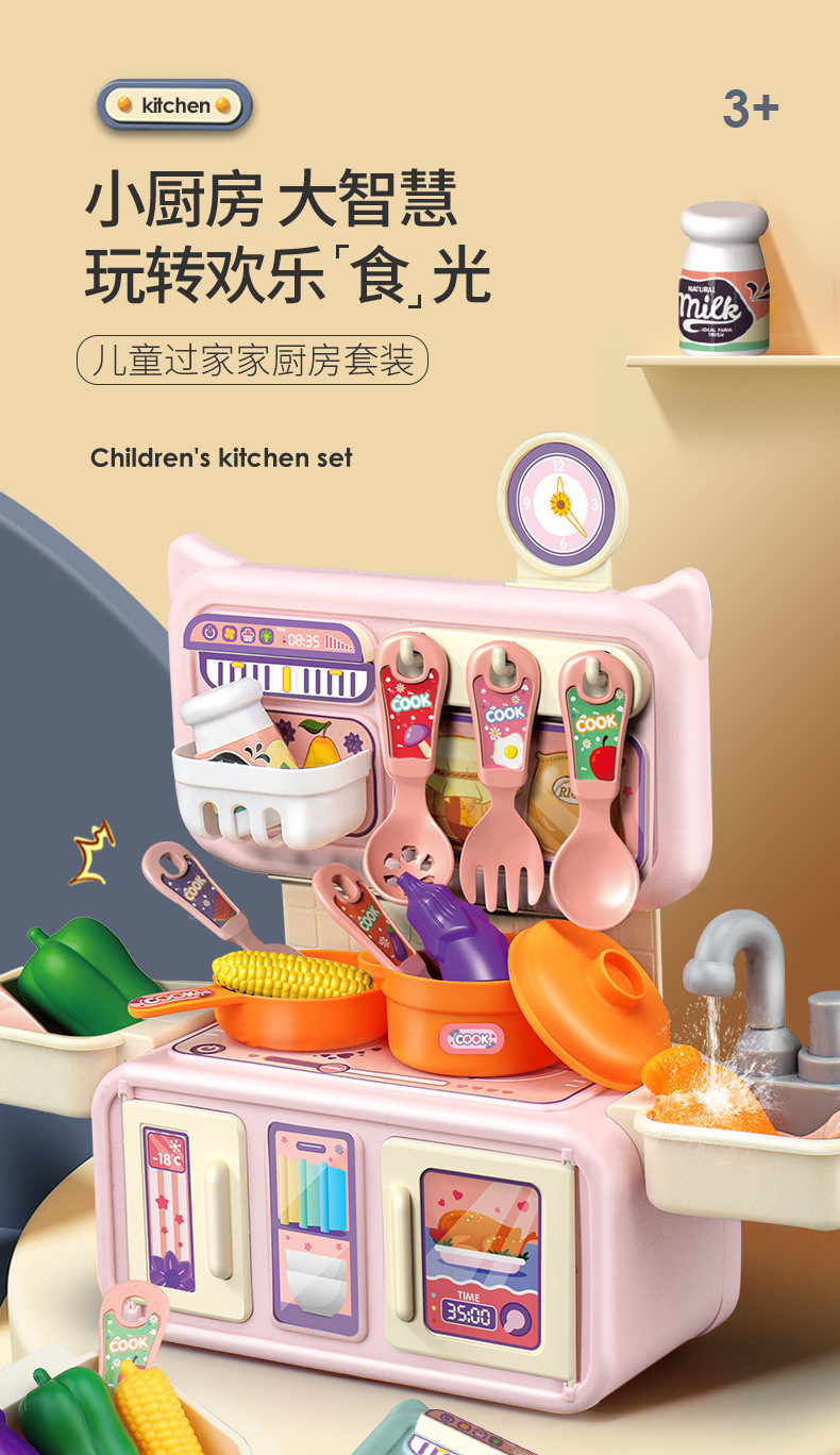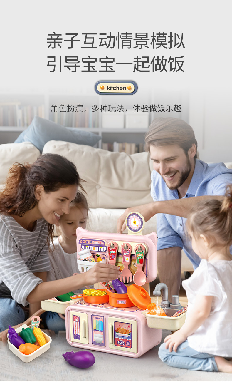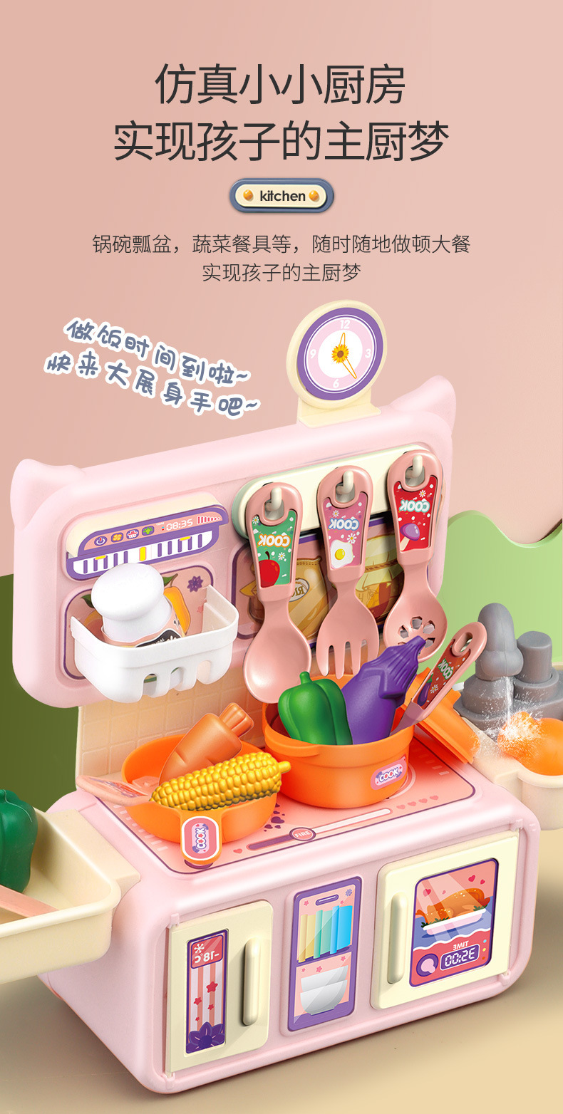 Cross-border Children's Playing House Kitchen Toy Set Girls Simulation Spray Water Cooking Mini Tableware Table Wholesale