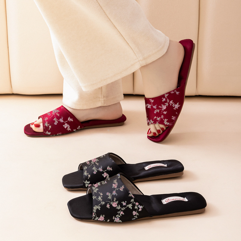 French Style Small Floral Pastoral Style Slippers Women's Home 2025 Summer New All-Match Gentle Elegant Sandals