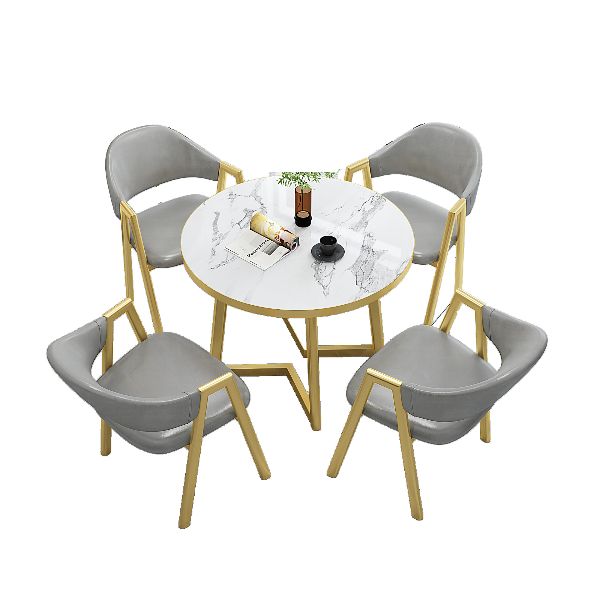 90CM A Table Four Chairs Light Gray Leather (chair Other Color Message)