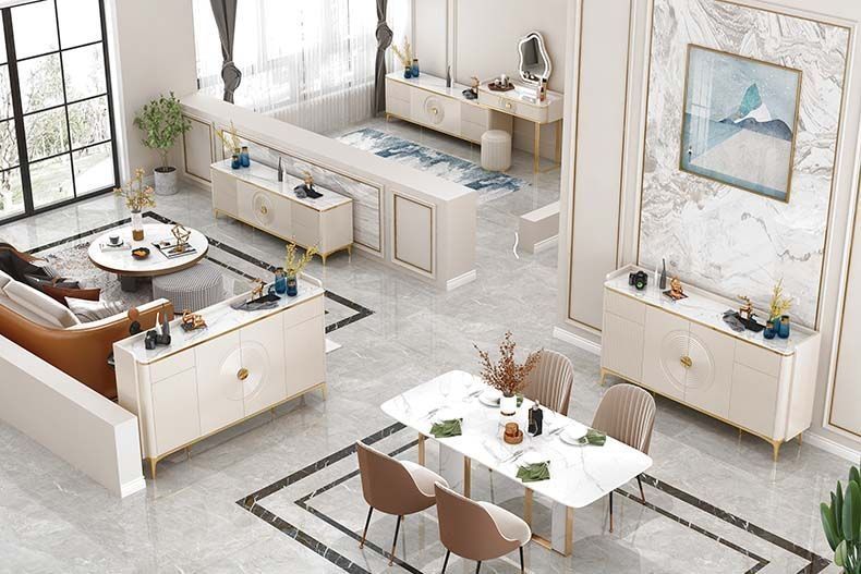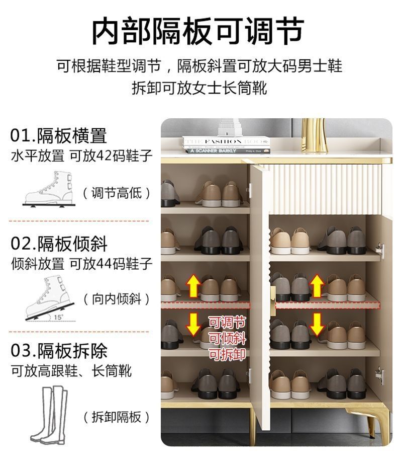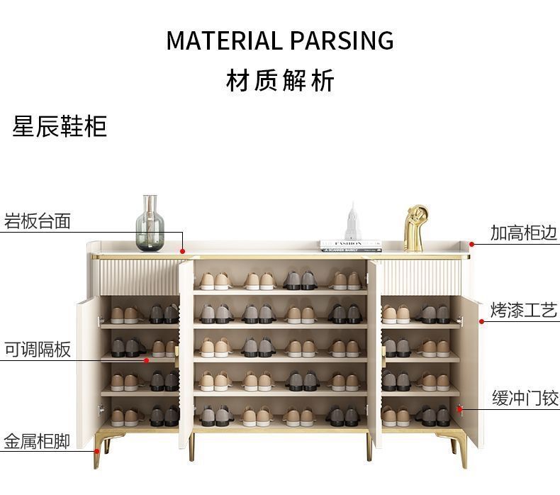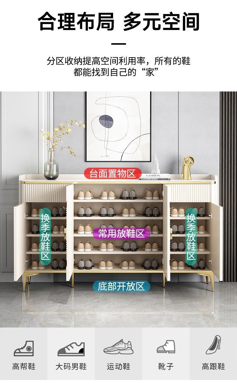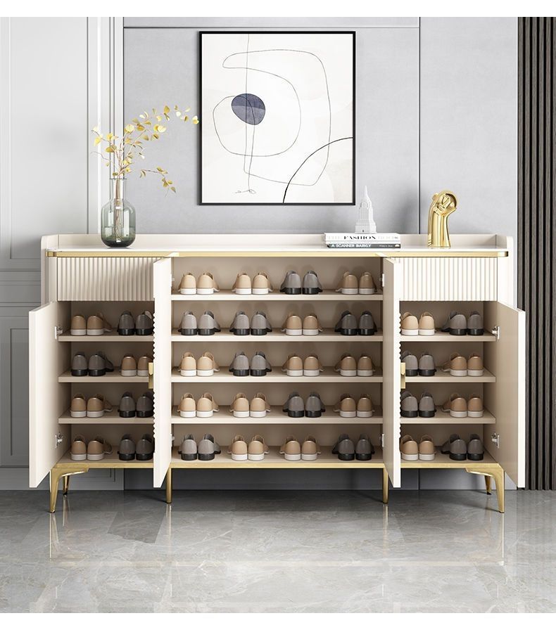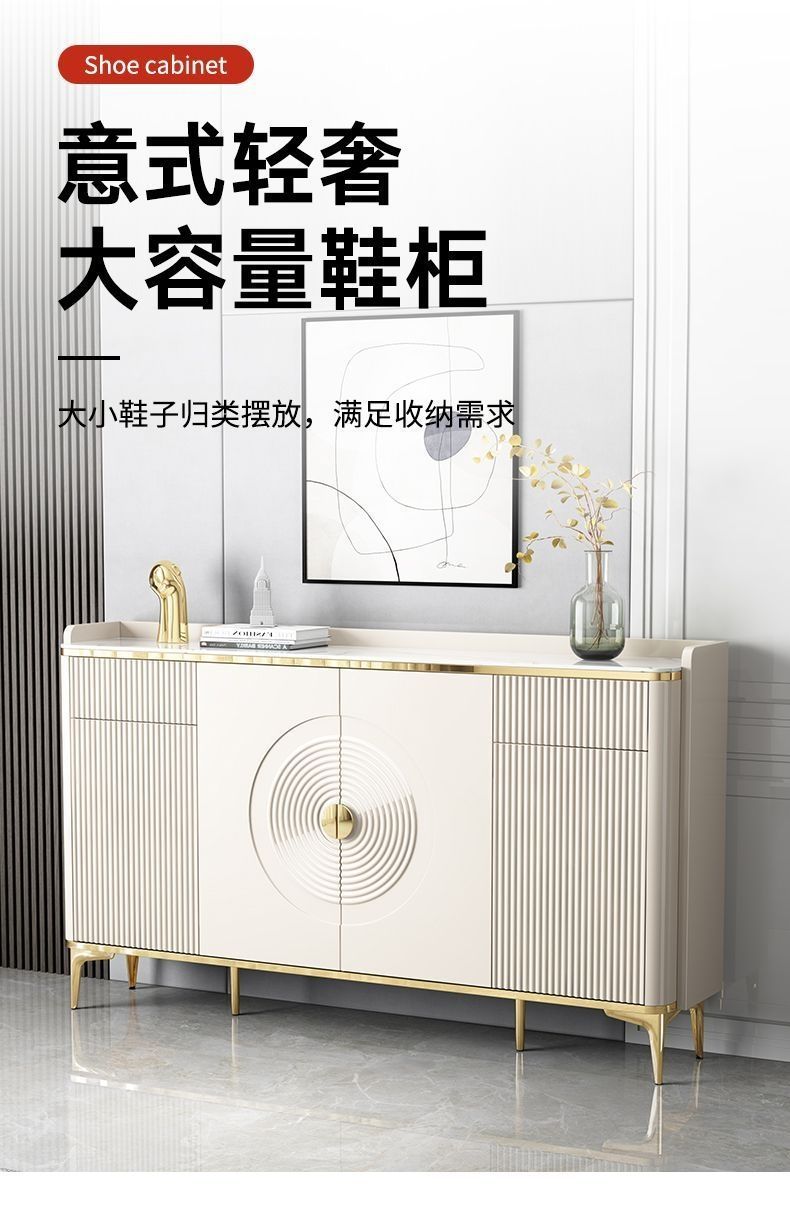 Sideboard Integrated Wall-Side Cabinet Italian Cream Rock Board Entrance Shoe Cabinet Large Capacity Corridor Wall-Side Kitchen