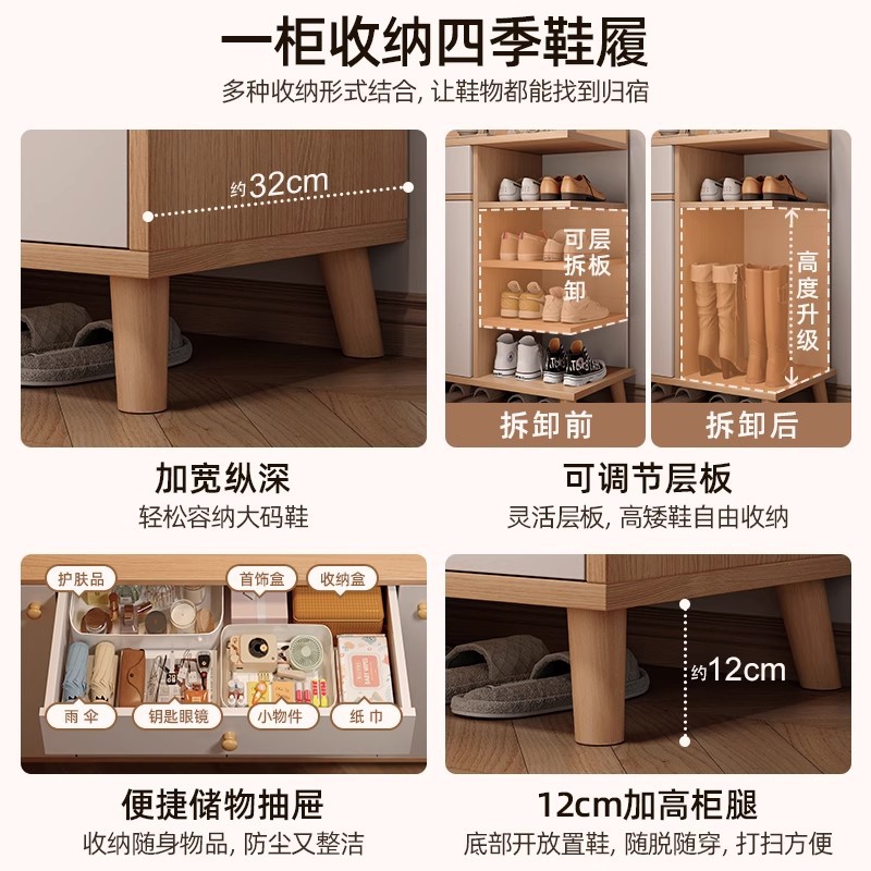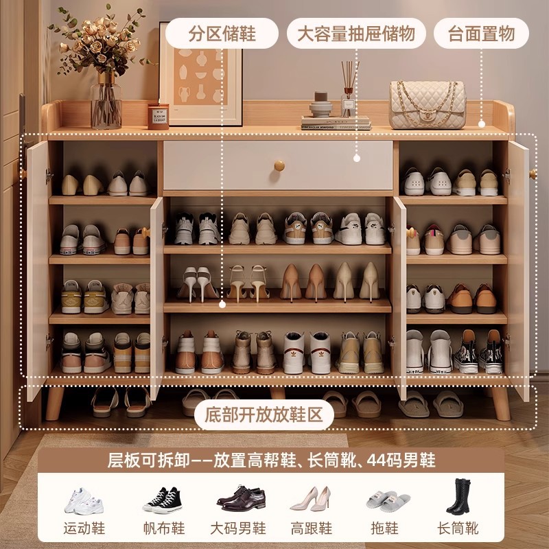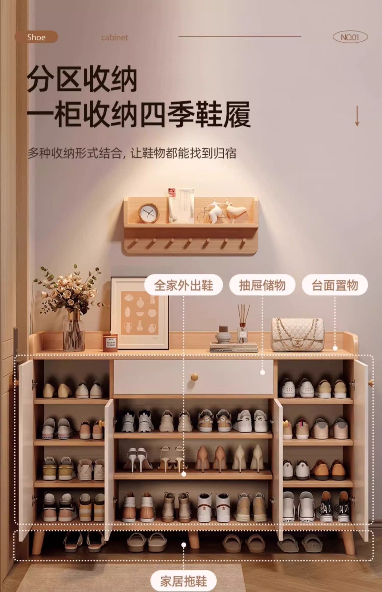 Strict Selection Of Solid Wood Shoe Cabinet Home Door Entrance New Entrance Storage Cabinet Integrated Wall Corridor Elevator Shoe Rack